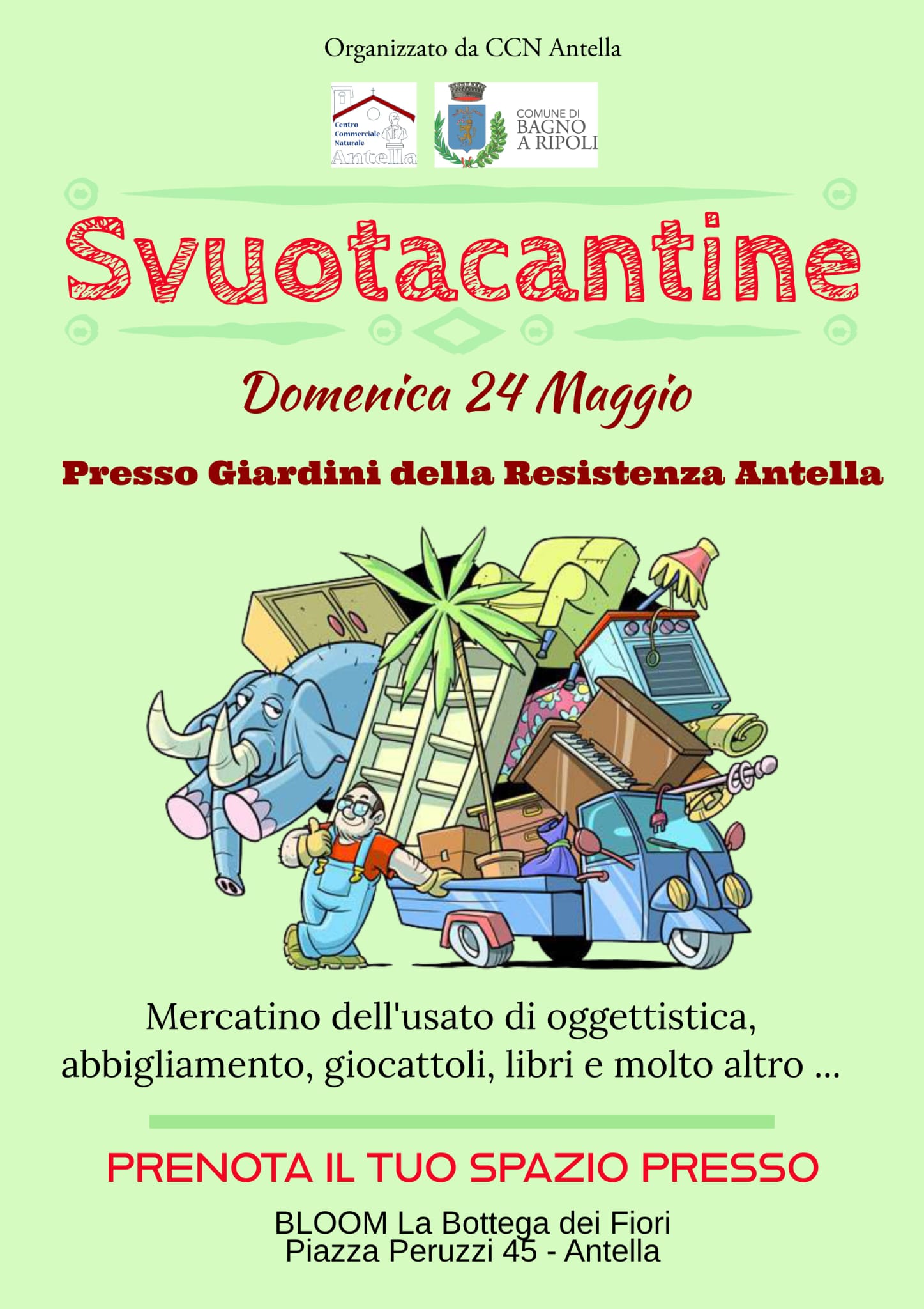 Usato, oggettistica, libri e molto altro. All’Antella fuori tutto con lo Svuotacantine. Appuntamento con il grande mercatino di primavera domenica 24 maggio ai giardini della Resistenza. Per tutta la giornata, banchi con tante idee regalo, articoli per la casa, dischi, giocattoli, abbigliamento di seconda mano a caccia di nuovi proprietari.