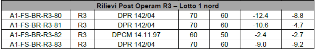 Una delle novità del trimestre ha riguardato l’avvio di campagne di accertamento fonometrico in zone dove le opere di mitigazione – come le barriere acustiche e l’asfalto fonoassorbente – sono già state completate. A seguito di segnalazioni dei residenti e di un sopralluogo congiunto tra Arpat, Comune di Bagno a Ripoli e tecnici incaricati, erano stati scelti quattro ricettori specifici per monitorare i livelli di rumore attuali:
