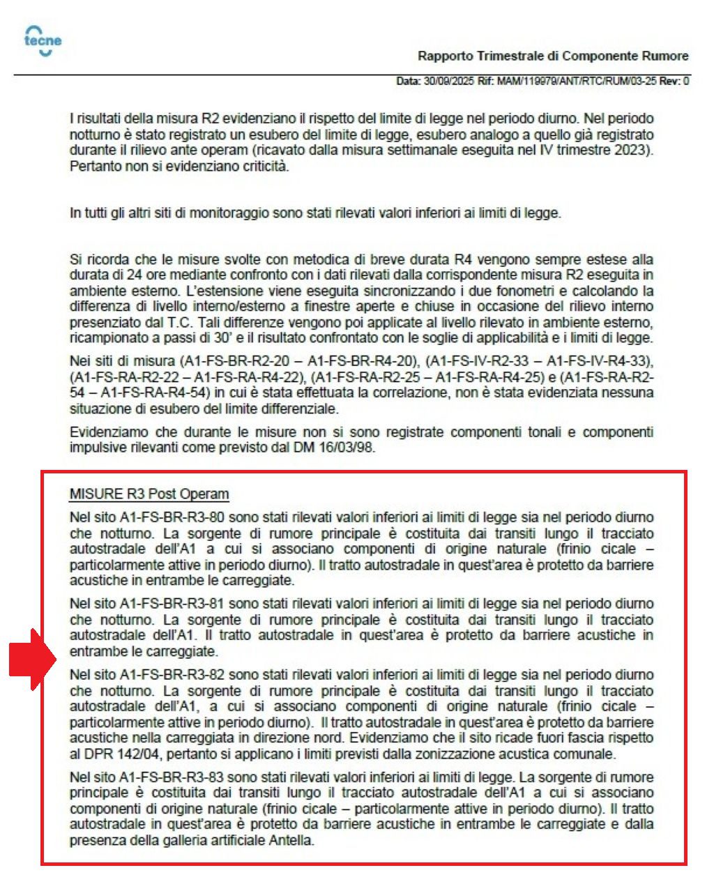 L’ultimo rapporto trimestrale (luglio-settembre 2025) redatto da Tecne per Società Autostrade analizza nel dettaglio l’impatto acustico dei cantieri e del traffico veicolare sulle abitazioni.
