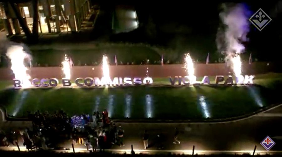 Il Viola Park è stato ufficialmente “battezzato”. Stasera la scritta a grandi lettere, finora coperta da teli viola, è stata svelata, anche se ormai ben nota a tutti.