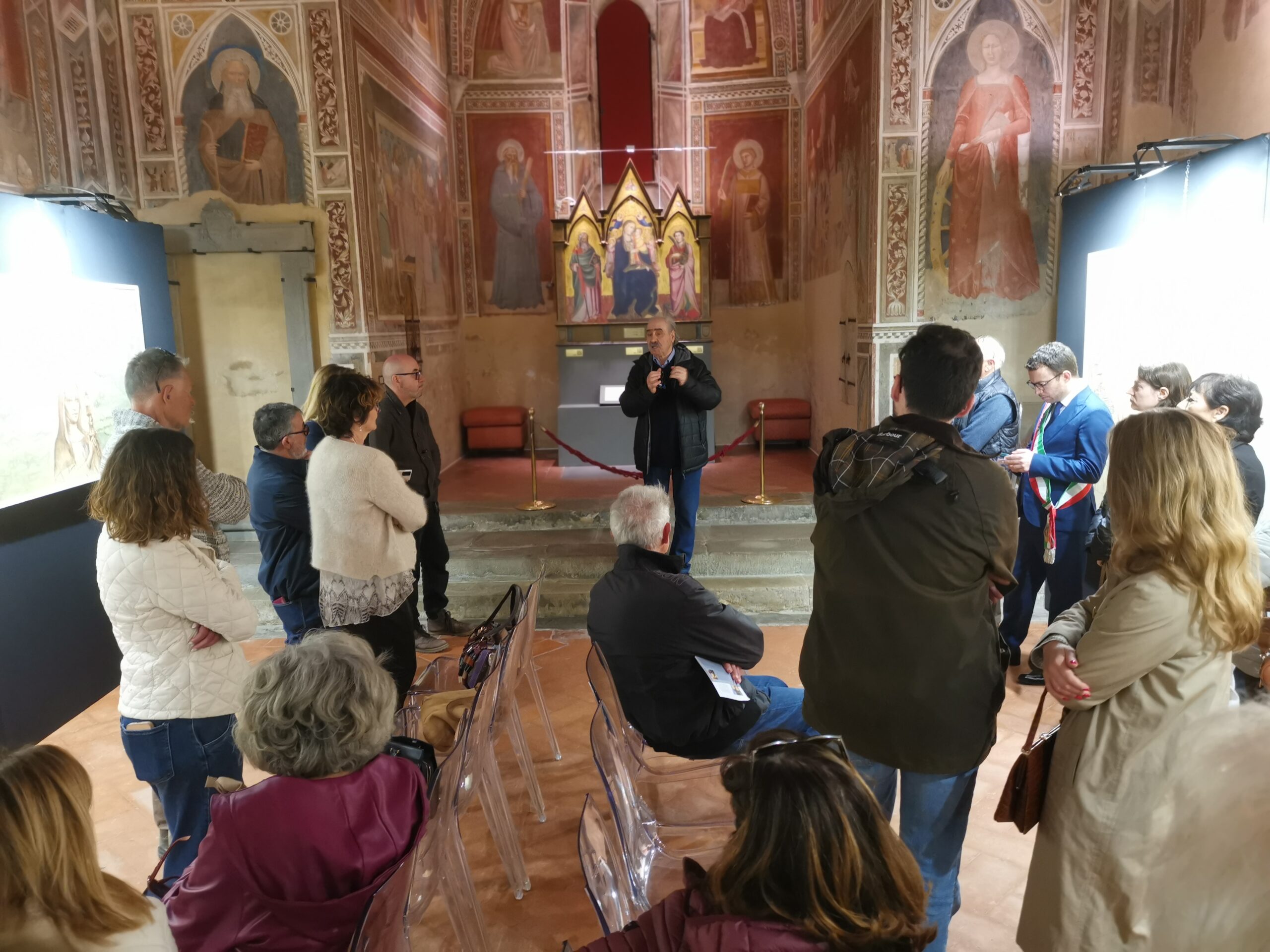 Presenti stamani all’inaugurazione, accanto a Callossi, il sindaco Francesco Pignotti e l’assessora alla Cultura Paola Nocentini. “Una mostra intensa e originale – hanno definito “La Regola di Francesco” – che svela il percorso creativo di due tra i massimi interpreti del ‘buon fresco’ italiano, le tappe della loro ispirazione, il cammino che ha condotto alla realizzazione degli affreschi custoditi ad Assisi. A questo si aggiunge il poter evocativo del dialogo tra il Santo di Assisi e Santa Caterina, in un luogo come l’Oratorio così caro alla nostra comunità”.