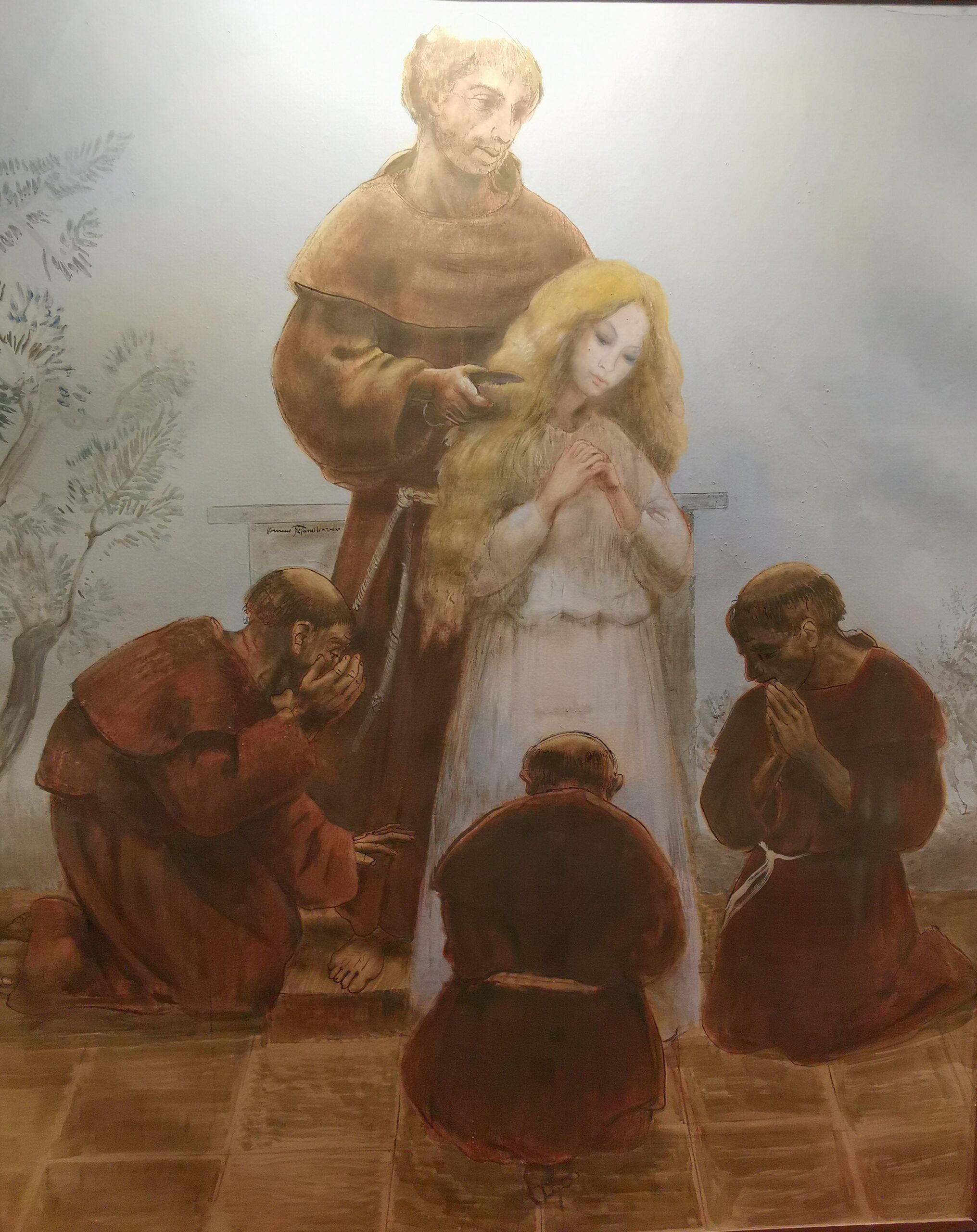 L’affesco prima di essere affresco. Santa Caterina e San Francesco si incontrano idealmente a Bagno a Ripoli. Le Storie del santo di Assisi rappresentate da Romano Stefanelli e Massimo Callossi, maestri del “buon fresco” e allievi di Annigoni, hanno trovato casa nell’Oratorio trecentesco dedicato alla santa di Alessandria. Accade con la mostra “La Regola di Francesco”, inaugurata stamani a Bagno a Ripoli, nella cappella di via del Carota, a Ponte a Ema.