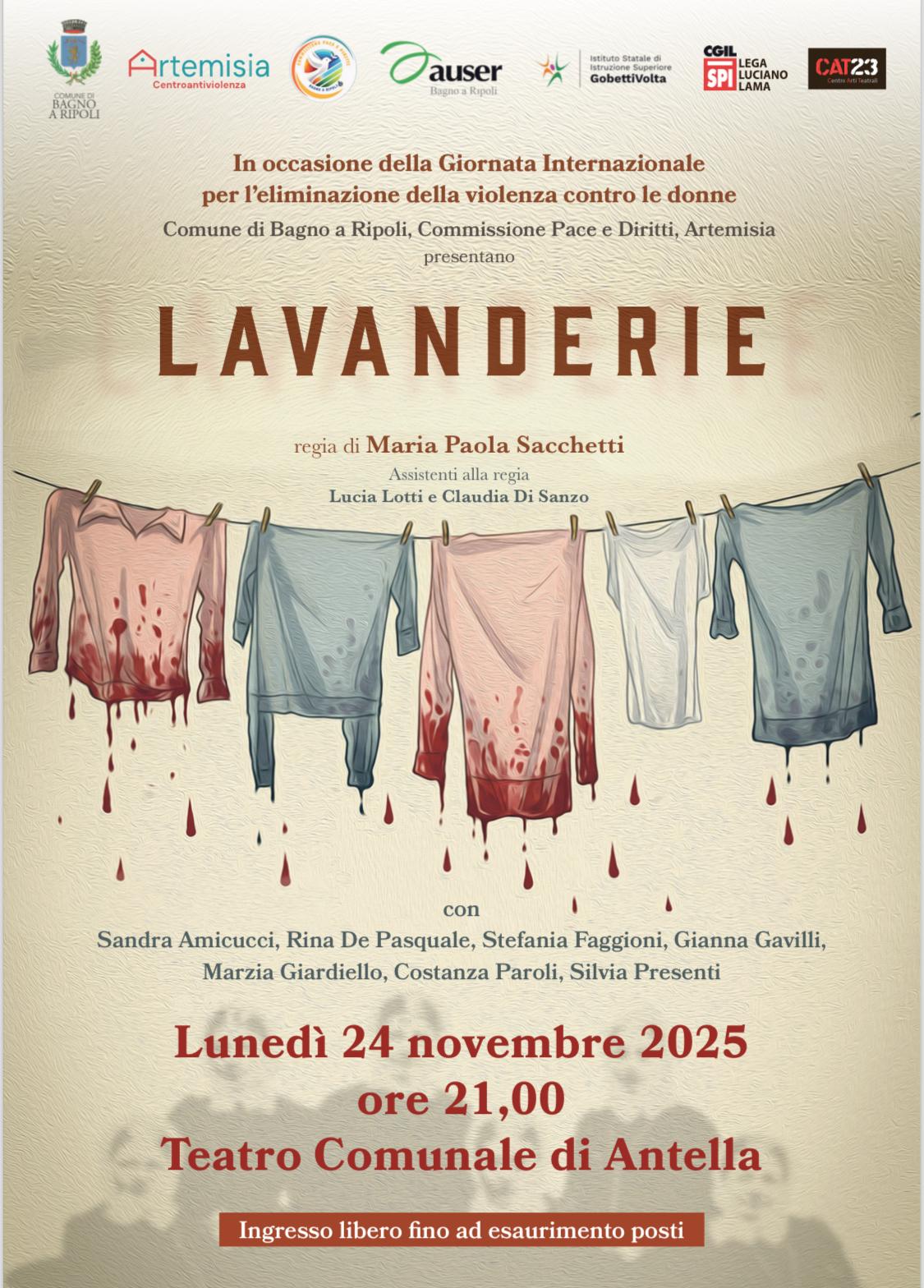 Le iniziative si aprono domani, lunedì 24 novembre, con la rappresentazione teatrale “Lavanderie”. Alle ore 21.00, al Teatro comunale di Antella, il Centro Arti Teatrali CAT23 porta in scena la vera storia delle Case Magdalene, le lavanderie irlandesi dove giovani donne orfane o rinnegate dalle loro famiglie dovevano espiare quelli che erano giudicati peccati molto gravi per la benpensante comunità cattolica del secolo scorso, e dove venivano sottoposte a indicibili maltrattamenti e privazioni. Una storia vera, non lontana dall’attualità (l’ultima Casa Magdalena venne chiusa nel 1996), che racconta il patriarcato da un punto di vista inedito, per mostrare come la violenza di genere abbia molti volti.