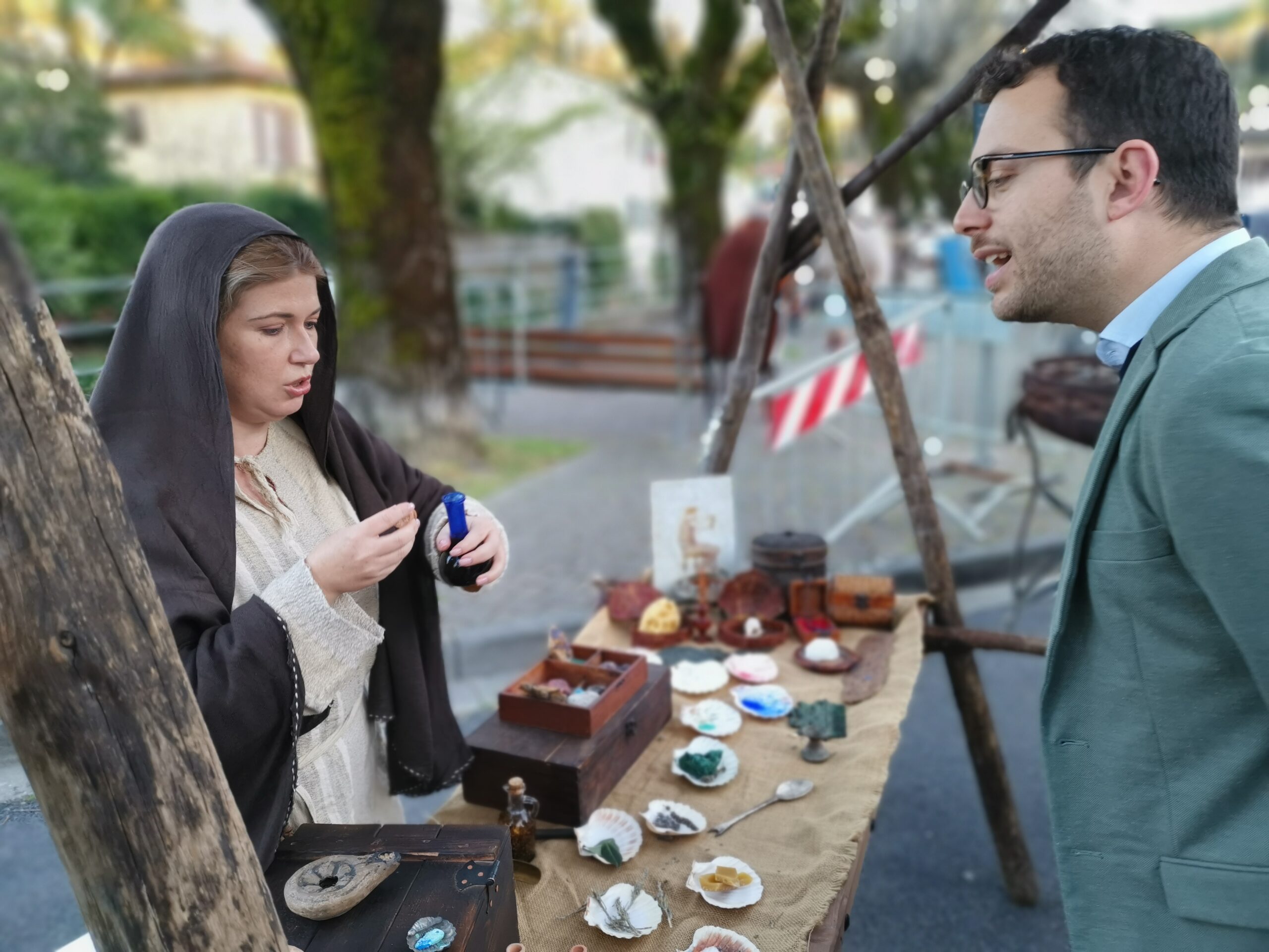 Piazza Umberto I a Grassina trasformata in Colosseo. Da una parte il banco dei brigidini, dall’altra quello di patatine e salsicce. Nel mezzo l’arena con i gladiatori in costume e armi d’epoca che se le danno di santa ragione. E’ successo ieri pomeriggio.