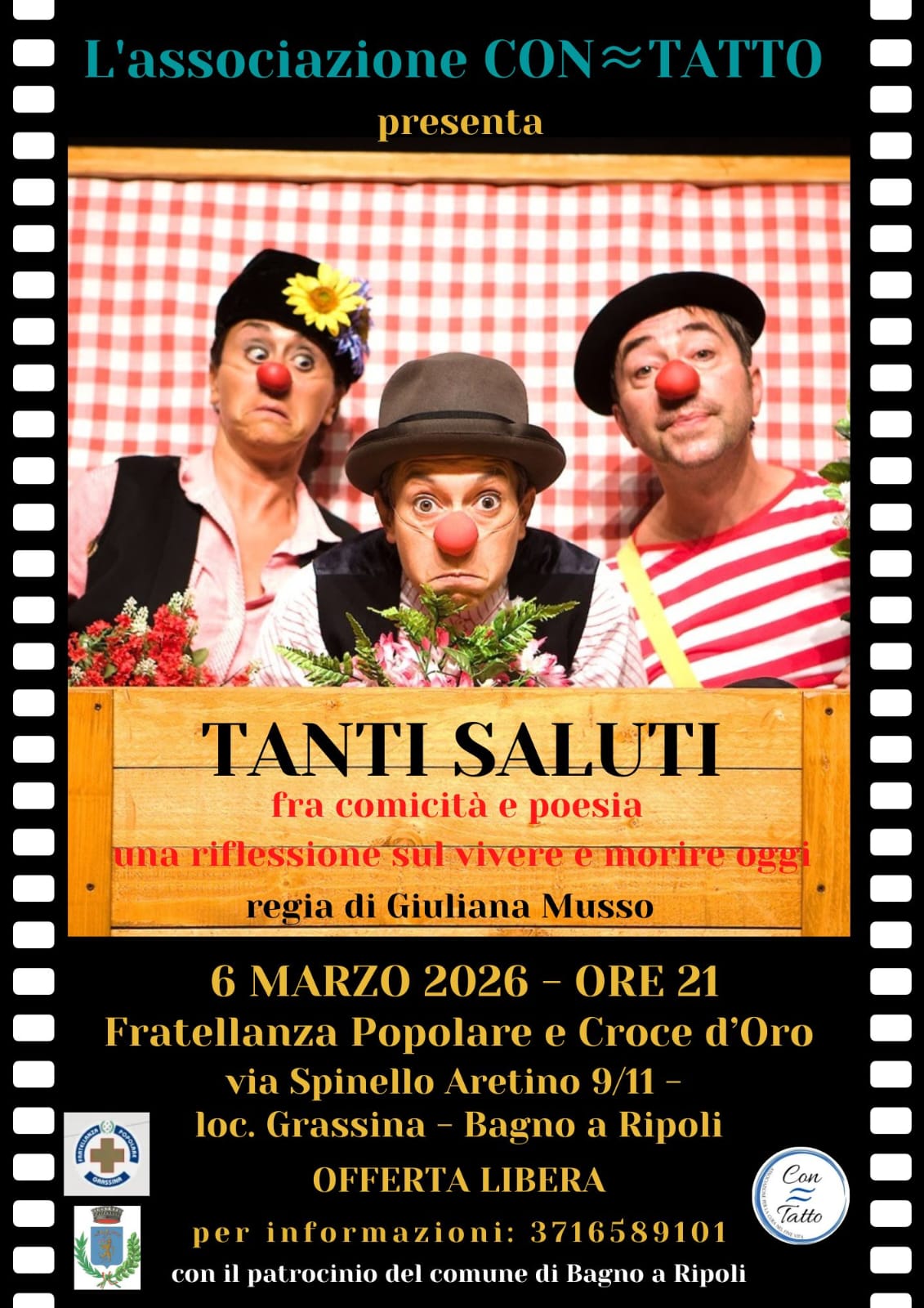 Secondo appuntamento venerdì 20 febbraio alle 21.00 nella sala “Cherubini” in Biblioteca comunale di Ponte a Niccheri (via di Belmonte 38) con l’iniziativa “Chi ama non conosce morte”. Attraverso letture, poesie e riflessioni, il poeta Massimiliano Bardotti guiderà i presenti in un viaggio sul tema della cura. Le iniziative proseguiranno venerdì 6 marzo alle 21.00 nella sede della Fratellanza popolare di Grassina (via Spinello Aretino 9/11) con lo spettacolo “Tanti saluti”, una riflessione sul vivere e morire oggi piena di delicatezza e comicità, firmata dalla regista Giuliana Musso. Partecipazione a offerta libera.