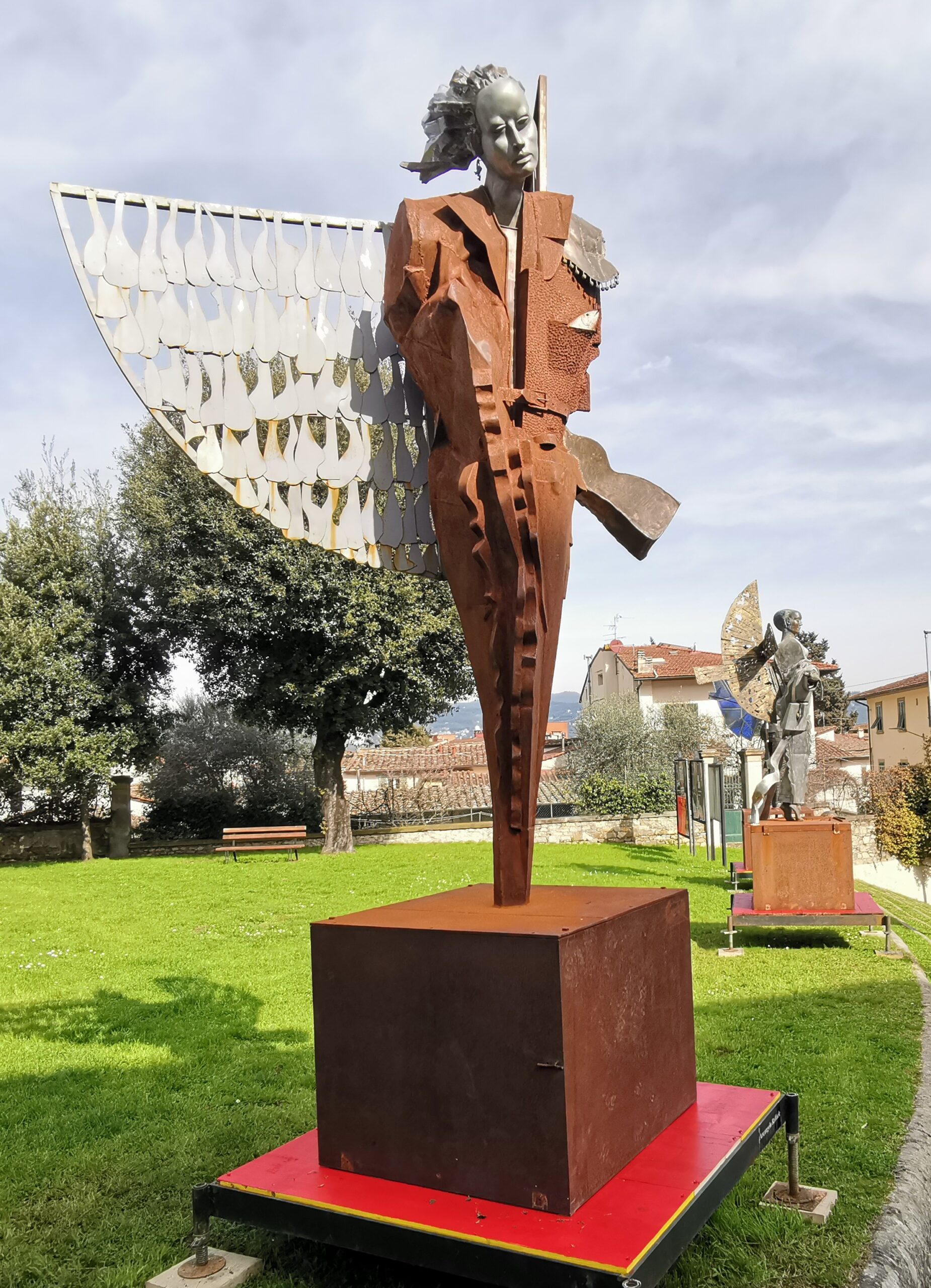 Si sa che gli angeli non hanno sesso, tanto meno gli arcangeli, anche se i loro nomi sono al maschile. Ma questo non vale per le sculture di Alberto Inglesi che da qualche giorno svettano nel giardino di piazza della Vittoria, di fronte al palazzo del Comune. Le figure dei tre arcangeli, Gabriele, Michele e Raffaele, mostrano, infatti, tratti femminili inequivocabili nel volto e nel corpo. Presenze silenziose e potenti che fanno parte della mostra “Donna in Cammino”, la cui inaugurazione è fissata per sabato 7 marzo alle ore 10:30, alla presenza del sindaco Francesco Pignotti e dell’assessora alla Cultura Paola Nocentini.