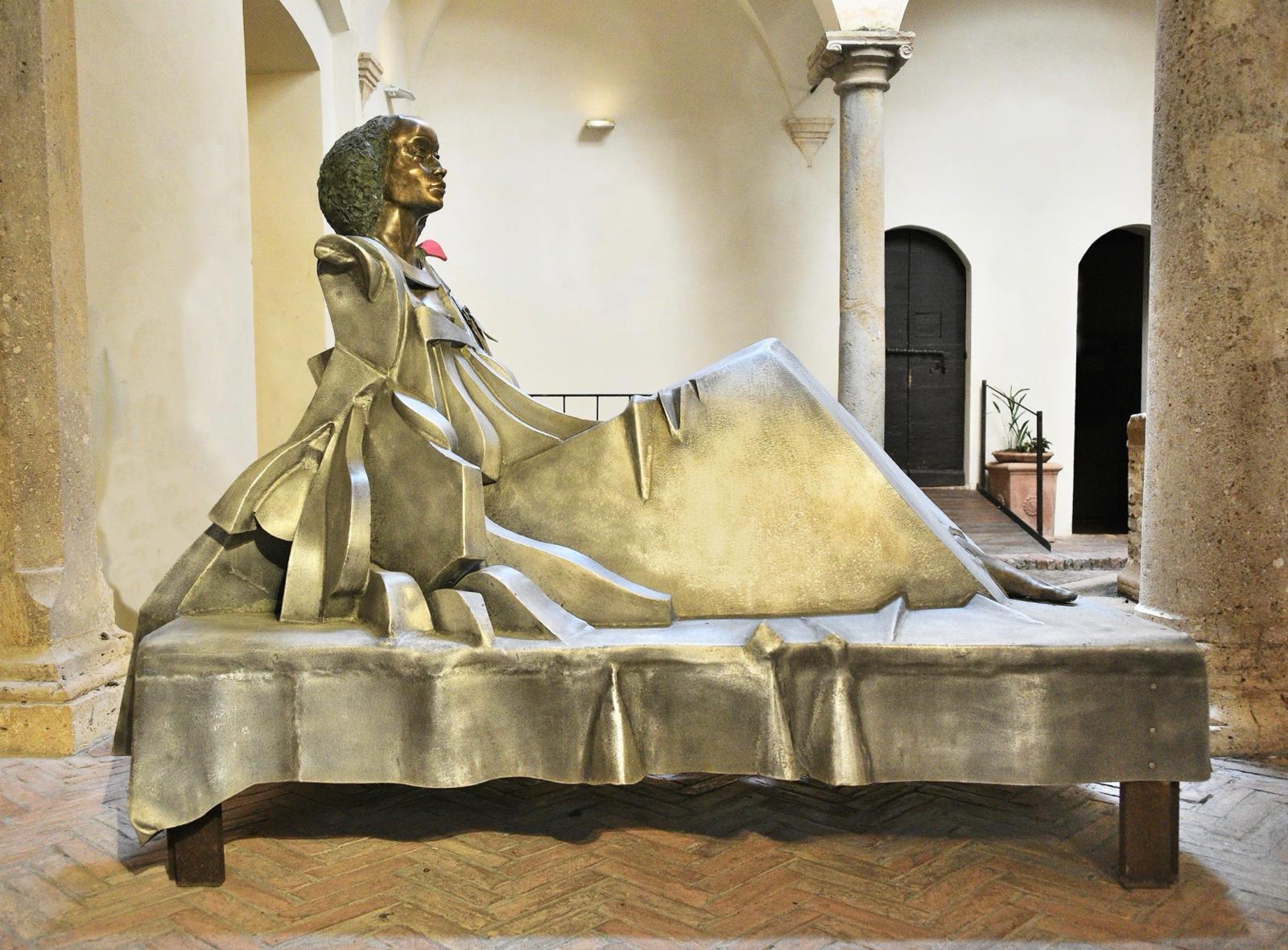 Il percorso espositivo è promosso dal Comune in occasione della Giornata Internazionale della Donna. I cittadini possono già ammirare le imponenti figure dei tre Arcangeli, anzi, delle tre Arcangele, nel giardino della piazza. Con la loro fisicità dinamica, tipica dello stile di Inglesi, sembrano fare da guardiane a questo cammino di riflessione. Adagiata sulla scalinata che porta al Municipio, ancora coperta, giace la scultura in alluminio e bronzo “Talassa”: una donna seduta su un letto, ginocchia rialzate come rivestite da un lungo abito, il busto eretto.