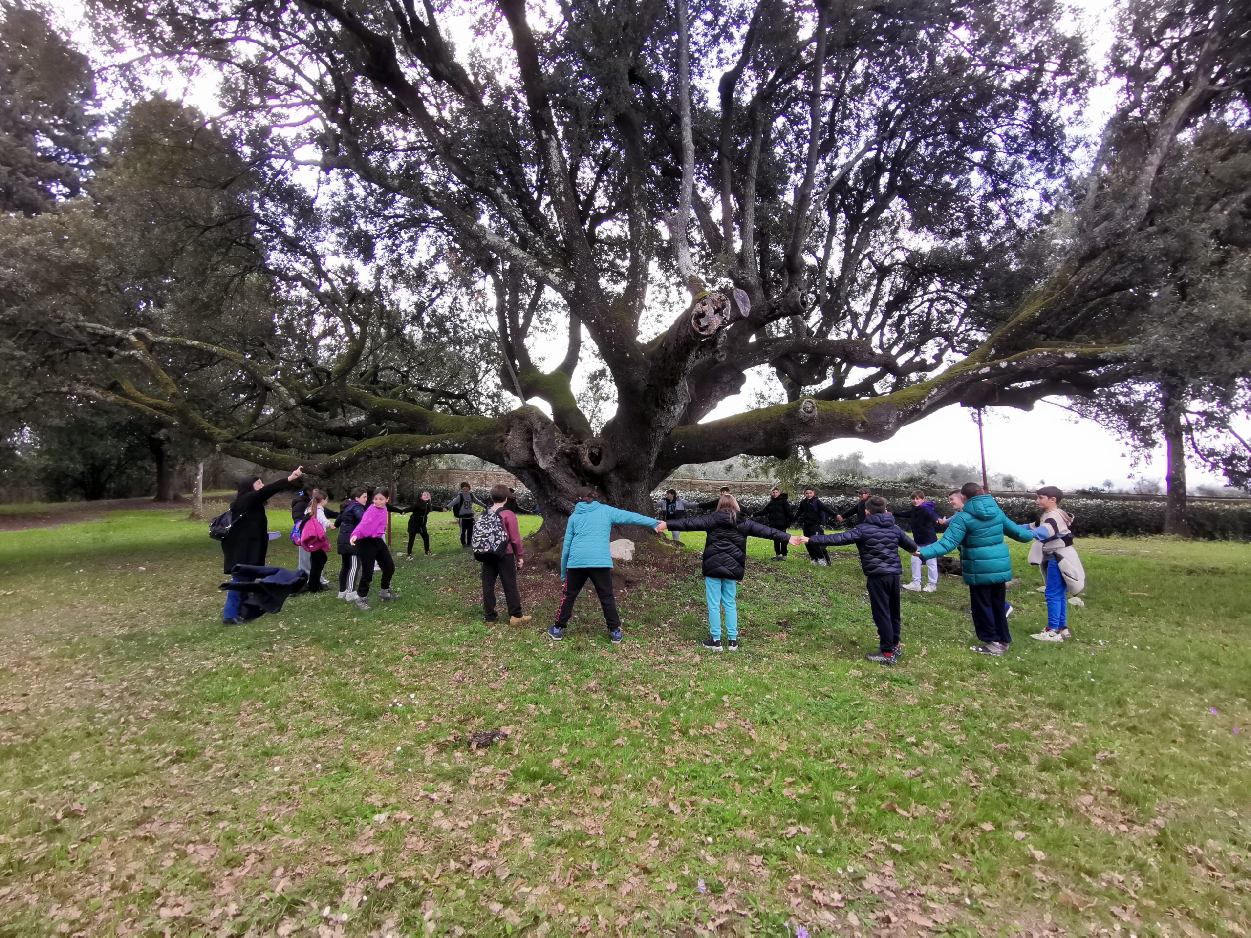 L’enorme chioma che incombe sui bambini, in un abbraccio quasi protettivo, e i bambini che abbracciano fisicamente il grande albero e poi inscenano un gioioso girotondo. Stamani il “faccia a faccia” tra gli alunni delle V A e B della scuola Michelet di Antella e il monumentale Leccio di Belmonte.