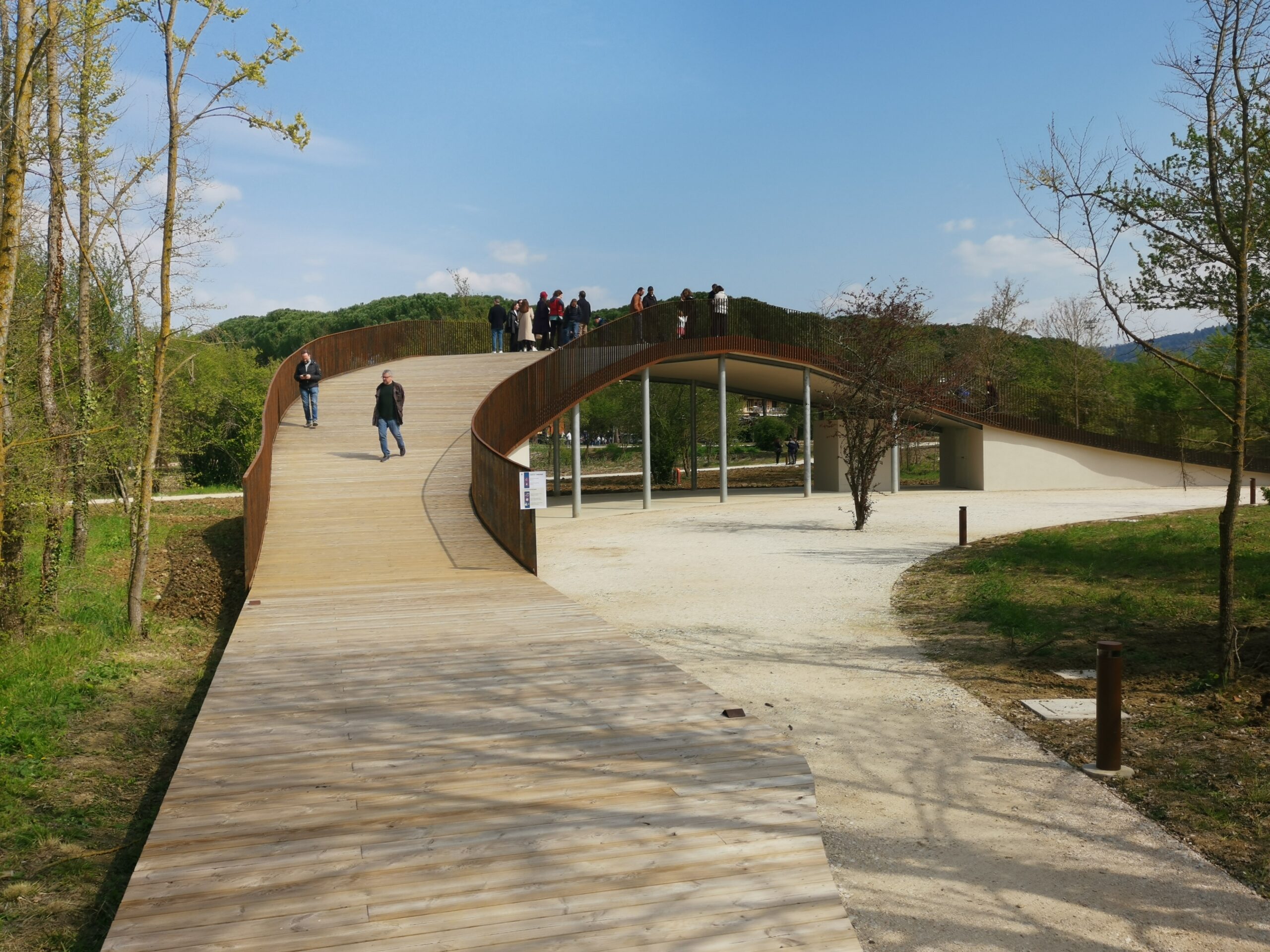 Tra gli elementi più caratteristici ci sono i camminamenti, alcuni dei quali sopraelevati in legno, tutti illuminati con luci dal basso, pensate per valorizzare l’ambiente senza impattare sul paesaggio. Nelle aree più aperte troveranno spazio strutture dedicate ad attività culturali, ricreative e di ristoro. Stavolta i rendering del progetto, diffusi a suo tempo, non sono stati traditi.