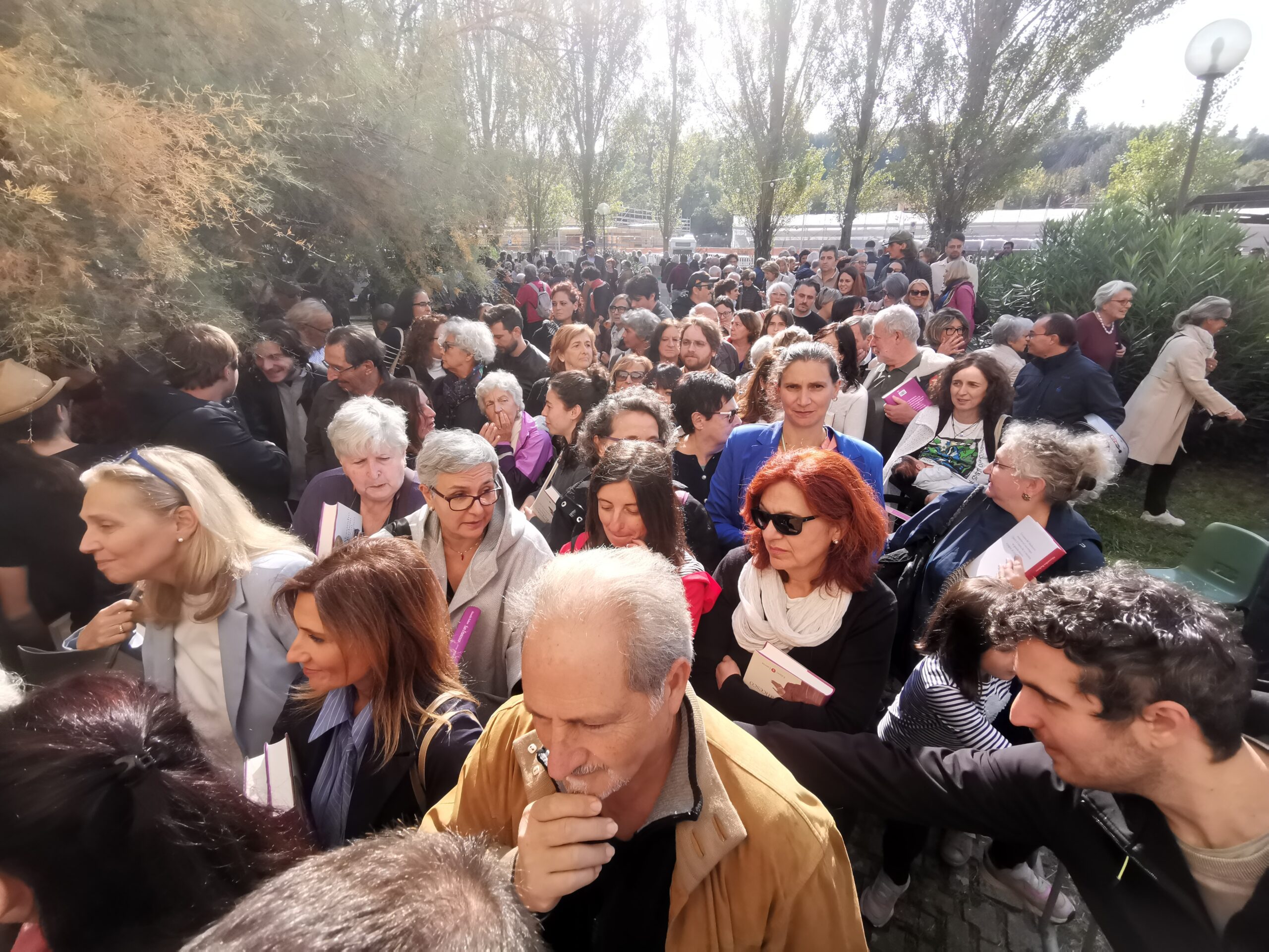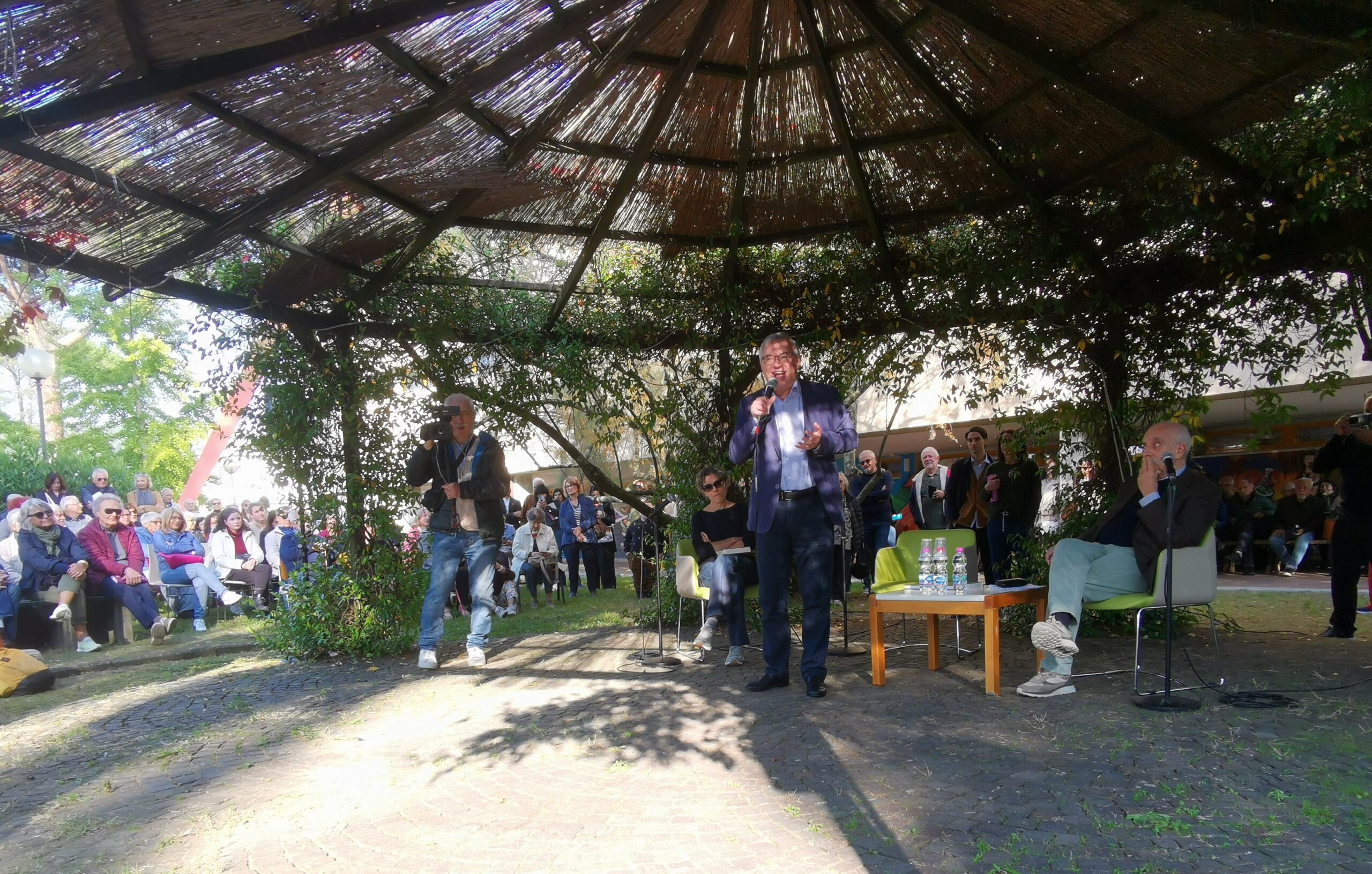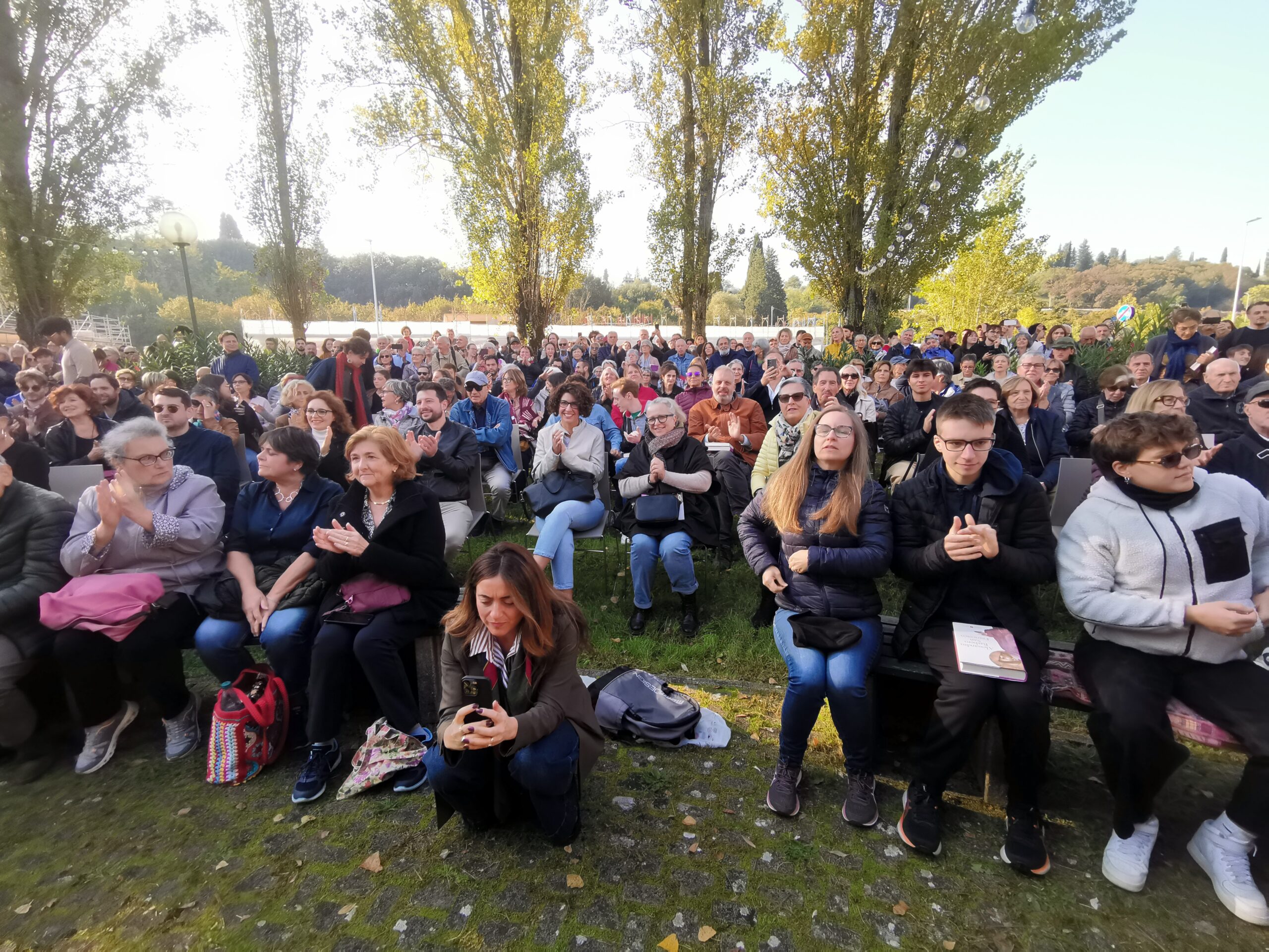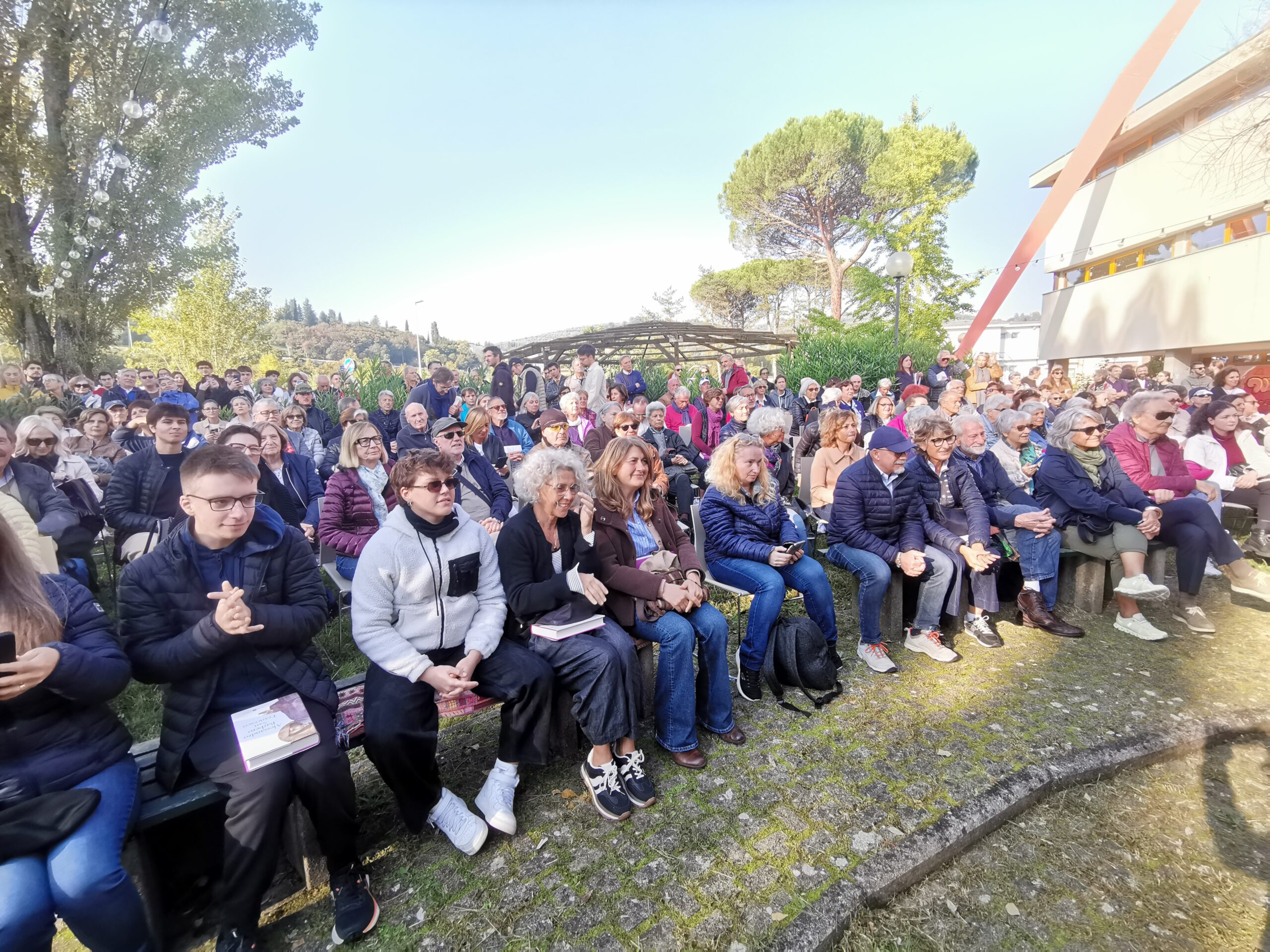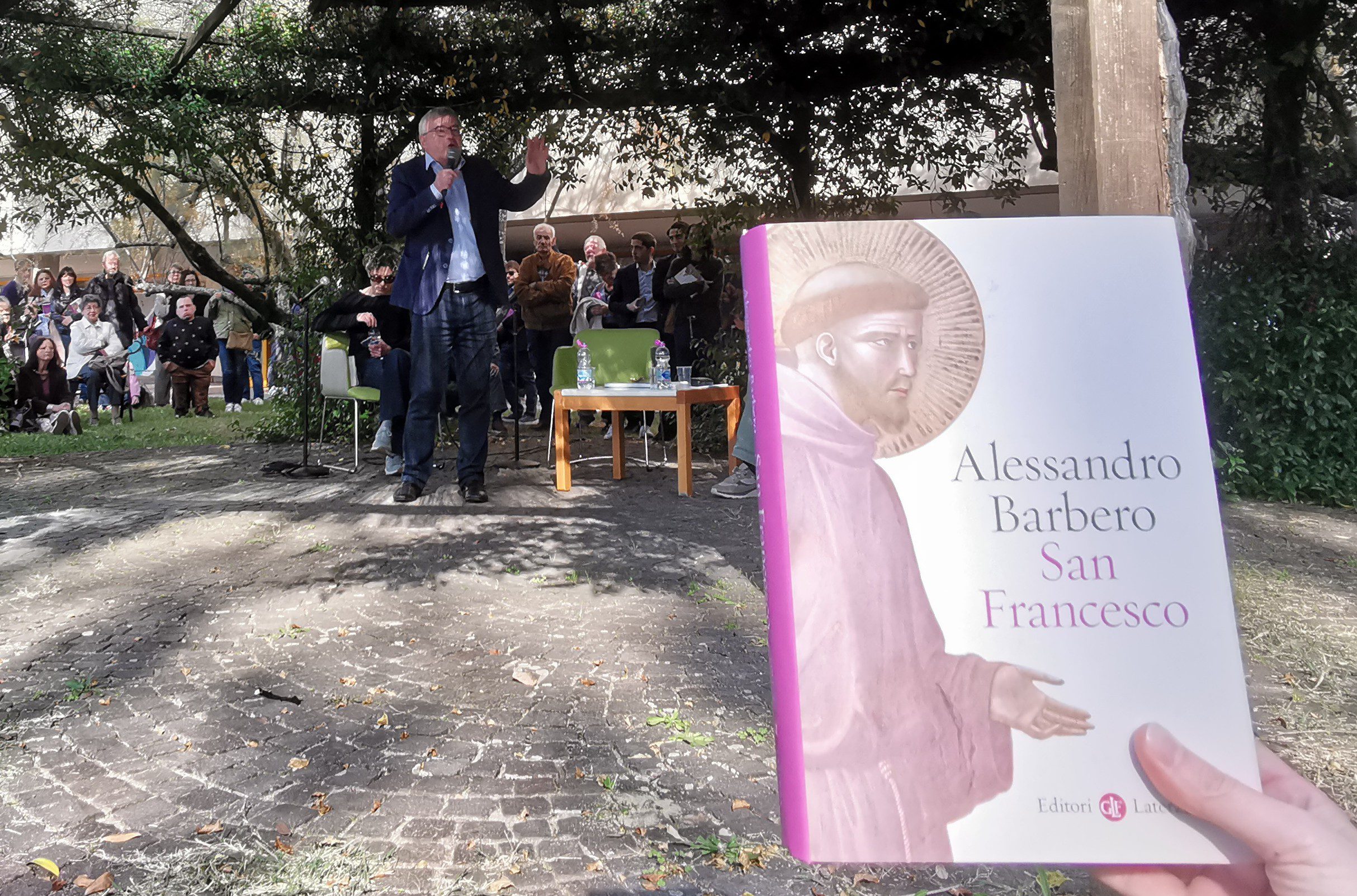 Metti San Francesco, il santo più amato dagli italiani, e Alessandro Barbero, il professore più amato dai telespettatori (e non solo) e il risultato non può essere che un successo strepitoso. Il giardino della Biblioteca comunale di Ponte a Niccheri, per l’occasione trasformato in palcoscenico, stracolmo di gente (circa 500 persone); i parcheggi di via di Belmonte insufficienti ad ospitare il continuo afflusso di auto fin dalle prime ore della mattina. Imperdibile l’appuntamento con una star della televisione come il professor Barbero, e la presentazione del suo libro su San Francesco, una star del cristianesimo.