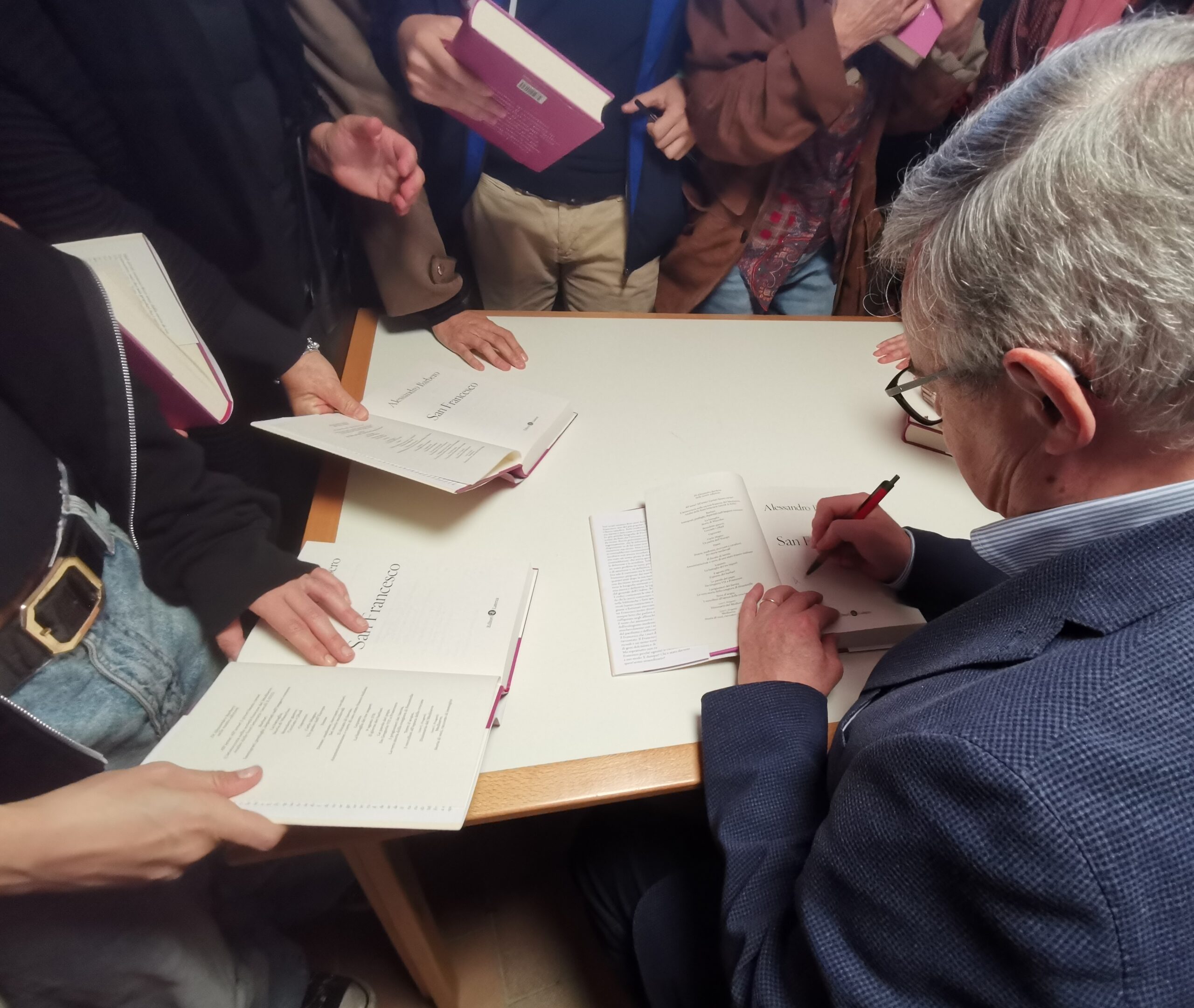 “In realtà nel mio libro non racconto San Francesco ma come i vari studiosi, anche non cristiani, hanno descritto l’uomo Francesco – ha spiegato il professor Barbero -. Ne esce non un’immagine unica ma mille diverse fra loro. Certamente Francesco è stato un uomo incredibile, stringerlo in un profilo unico è impossibile”.