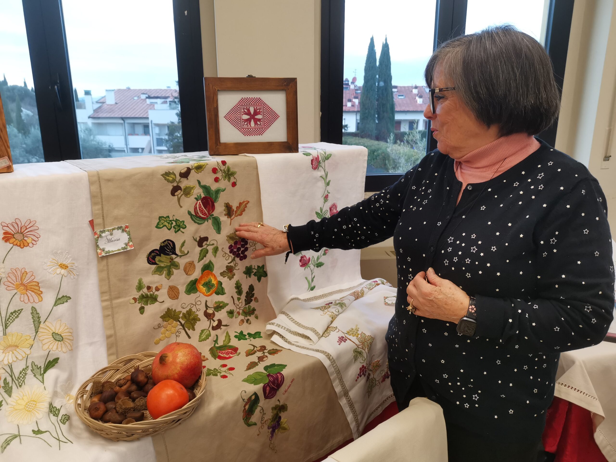Dietro ogni pezzo esposto c’è un percorso di apprendimento e di passione che affonda le radici nella storia del territorio. Guidate da Marisa Pesci, le allieve della scuola tramandano e rinnovano le tecniche delle ricamatrici locali, mantenendo viva una tradizione artigianale di grande valore culturale.