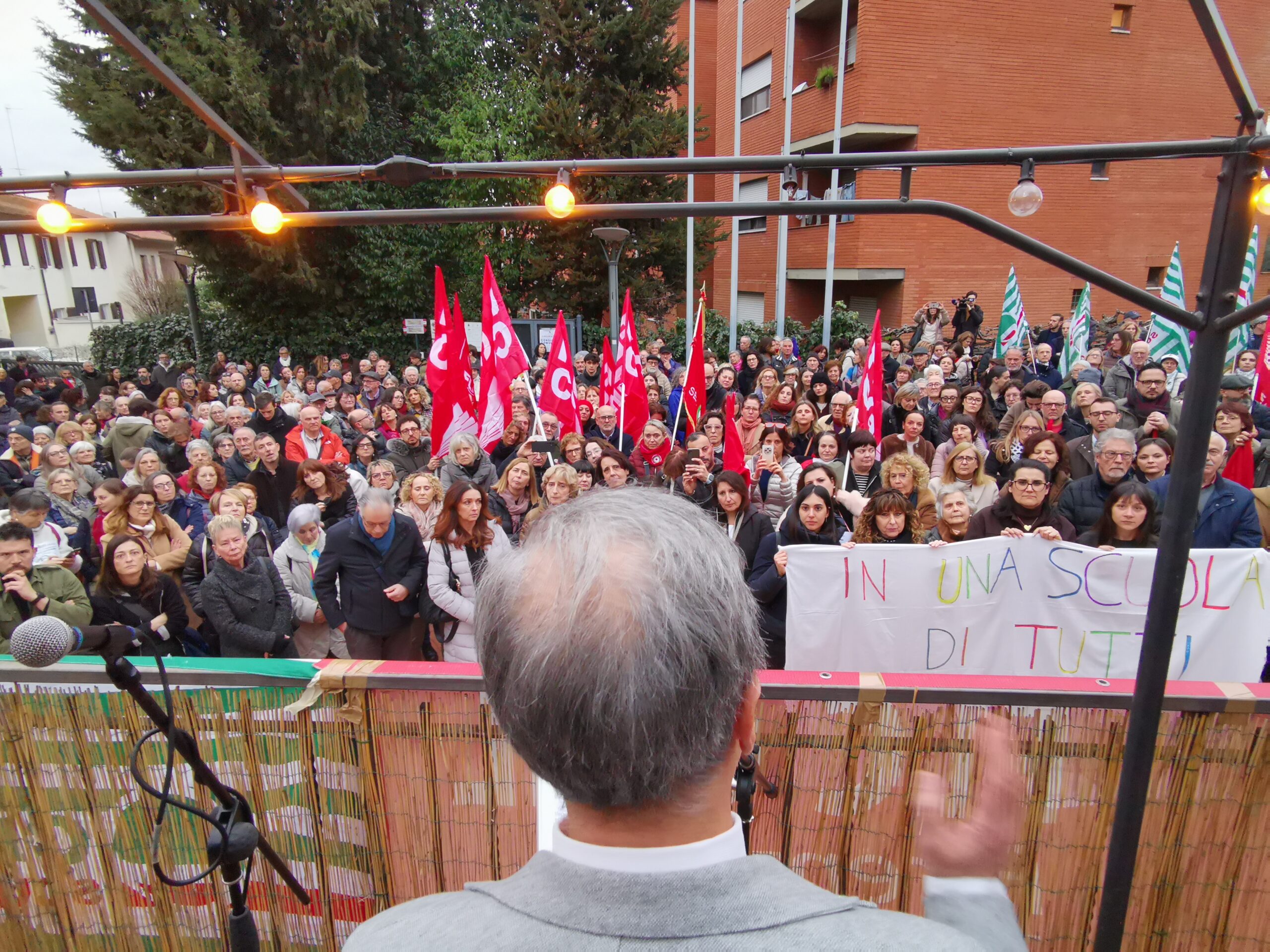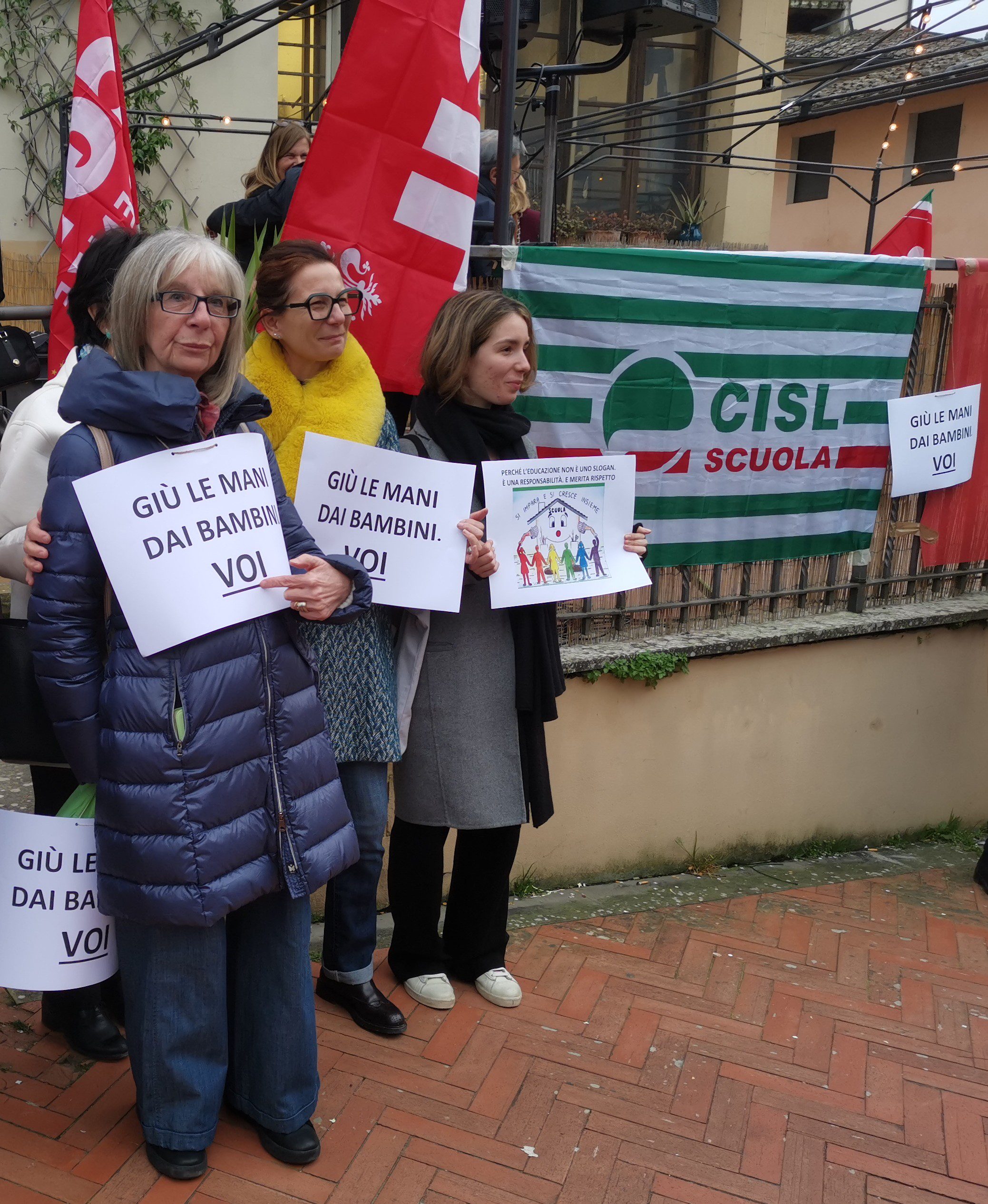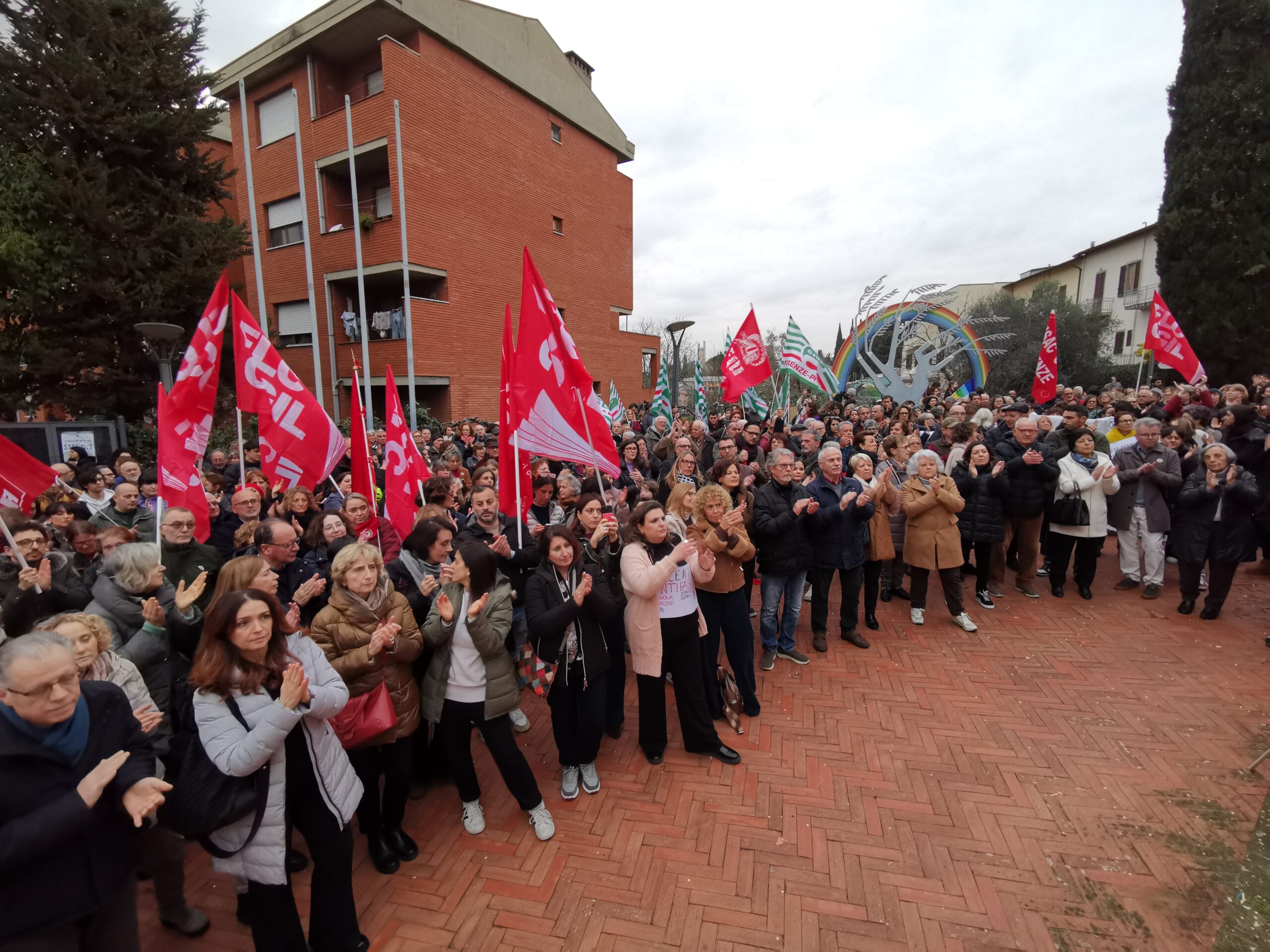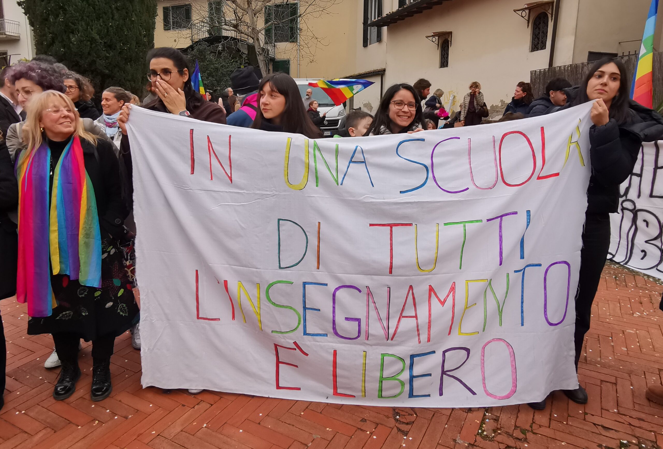 “Questa piazza ci dimostra nel modo più bello che noi non ci arrenderemo all’idea che si possa catalogare il pensiero, marchiare chi educa, schedare chi la pensa diversamente – ha aggiunto Pignotti -. E allora lo diciamo forte da questa piazza: Giù le mani dalla scuola libera”.
