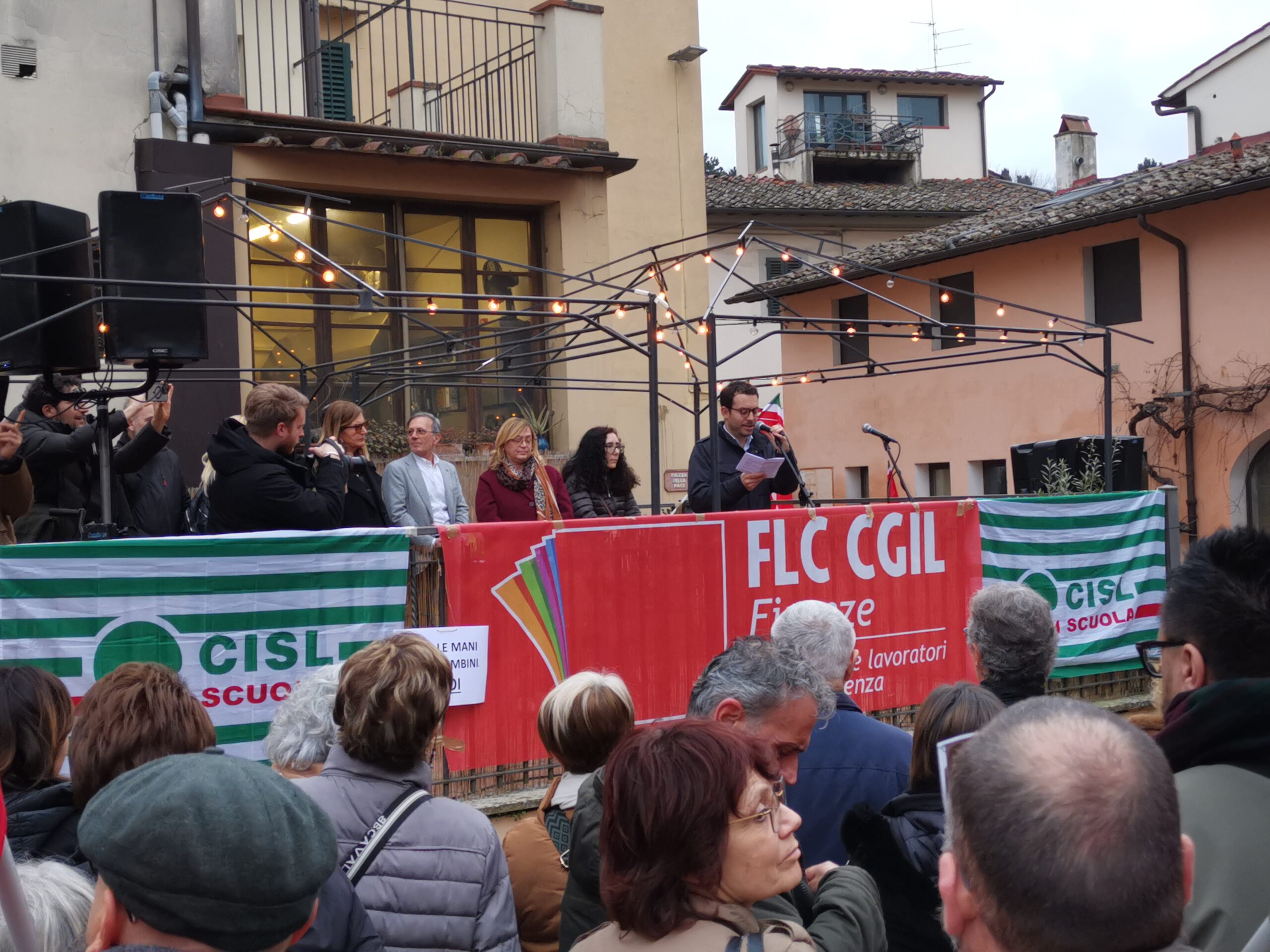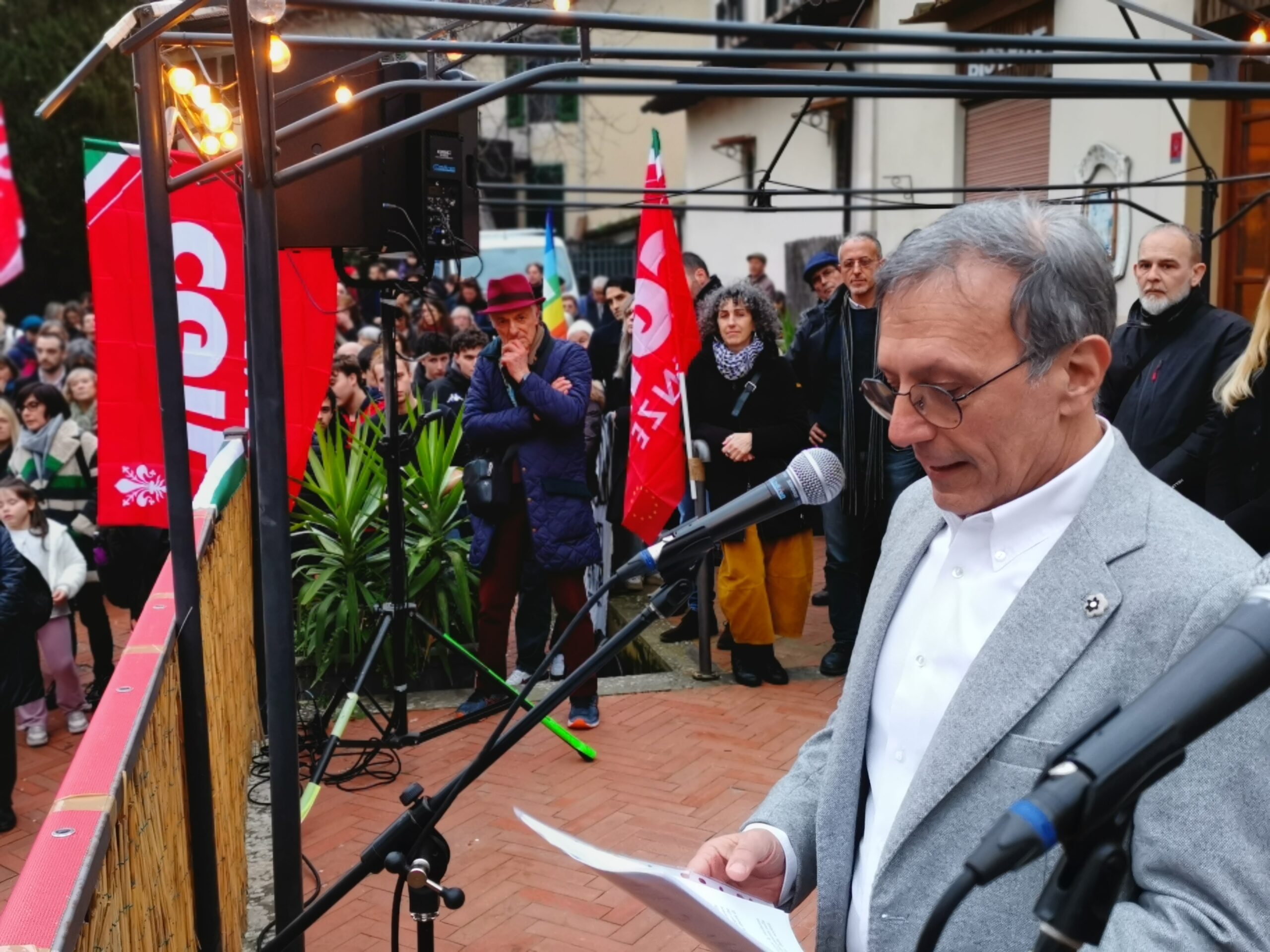 “Se siamo qui è perché qualcuno ha pensato fosse legittimo etichettare, ‘schedare’ le nostre scuole: ‘anti-democratica’, ‘politicamente orientate a sinistra’, ‘anti-americana’, ‘anti-sionista’. E tra queste etichette, ce n’è una che mi ha lasciato senza parole: ‘antifascista’. Quando l’ho letto non ci credevo. L’antifascismo trattato come un disvalore. Qualcosa da bollare come negativo. Eppure l’antifascismo è il fondamento della nostra Repubblica. È scritto nella nostra Costituzione, la stessa Costituzione su cui ogni ogni consigliere eletto deve giurare. Una Costituzione democratica e antifascista”: queste le parole del sindaco di Bagno a Ripoli Francesco Pignotti, oggi pomeriggio in piazza della Pace dove si sono riunite centinaia di persone.