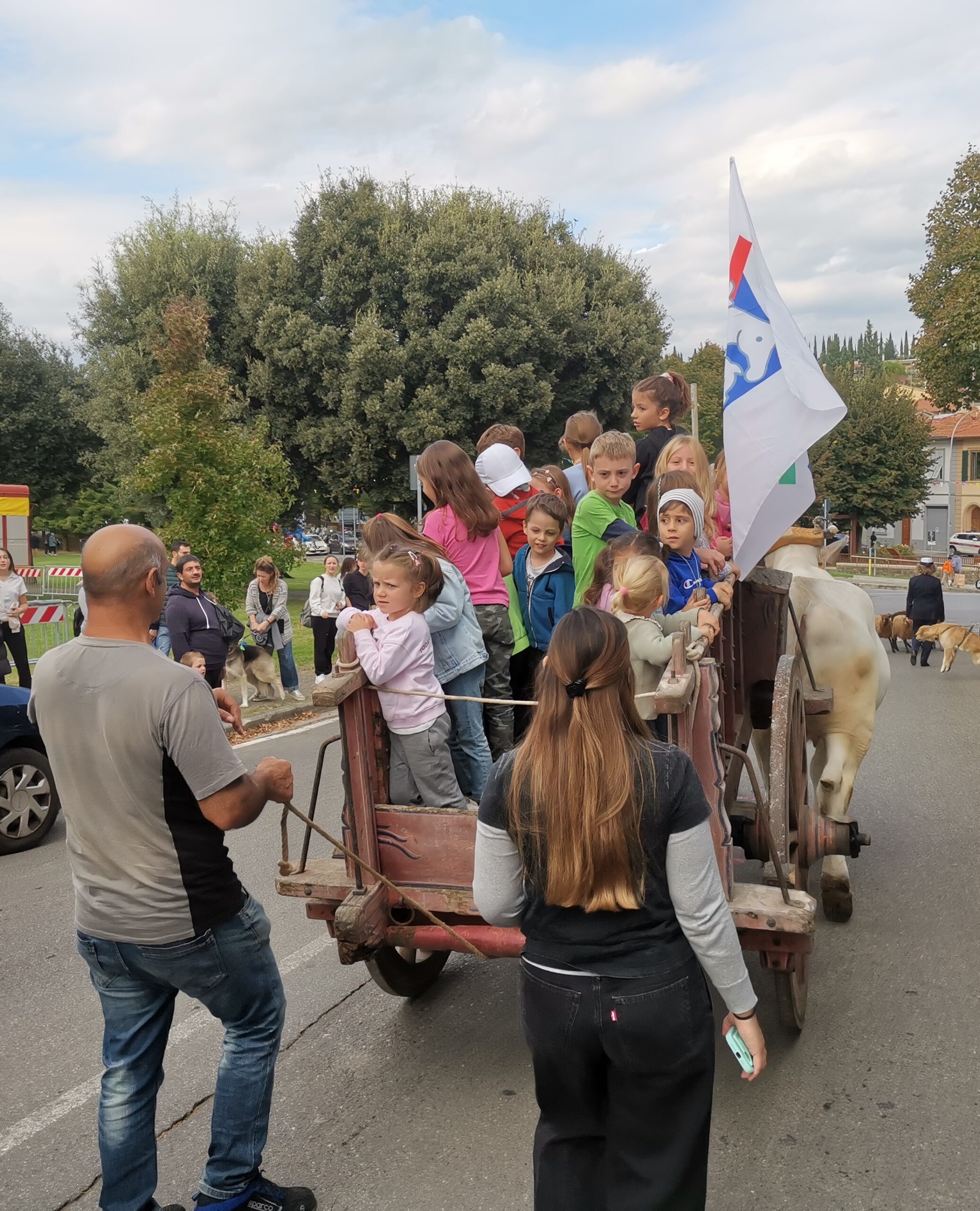 Grande entusiasmo fra i tanti bambini presenti, che hanno dato l'”assalto” al carro (risale al 1953) trainato da Contessa e Trixi, arrivate dalla frazione di Cesa, nel comune di Foiano della Chiana in provincia di Arezzo. Quindi è stato Mattina col cane Gianni e alcune pecore a dare spettacolo con una dimostrazione di sheepdog.