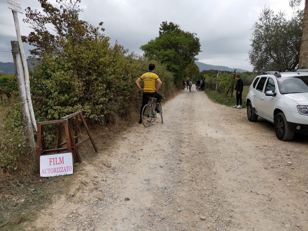 Le scene girate ieri vedono Bartali (Giacomo Ugolini) in maglia gialla con il nome scritto sulla schiena percorerre via del Cerreto e arrivare ad un posto di controllo della polizia tedesca. Fra i tre soldati (Enrico Maestrelli, Alberto Peruzzi Giacomo Stella dell’associazione di rievocazione storica “La croce di ferro”) c’è un ex ciclista. Vedendo il documento di identità di Bartali, lo riconosce come il campione. I due scambiano qualche parola e Bartali, con i messaggi per la Resistenza nascosti nella canna della bicicletta, viene lasciato passare senza problemi.