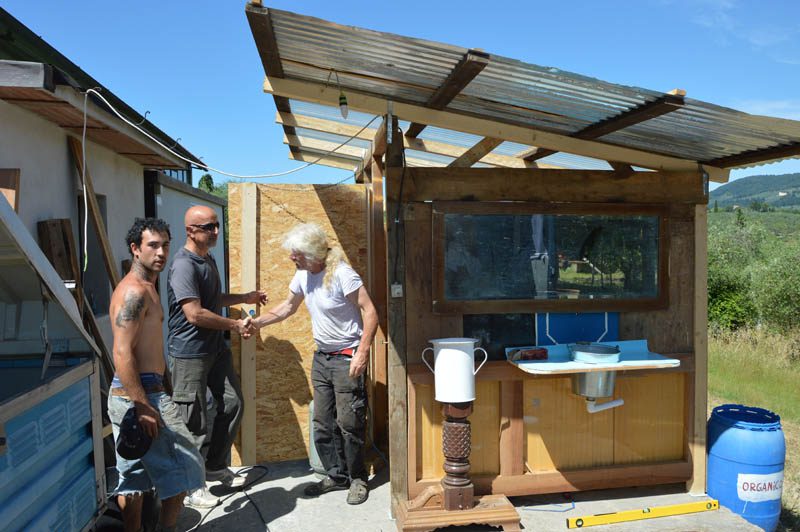 Nuovi docce e wc – Per quanto riguarda la tre giorni, a Cuculia fervono i preparativi per l’ospitalità. Nei tre giorni si prevede l’afflusso di un migliaio di persone. La “cucina” si è attrezzata per fornire almeno 1.800 pasti. I campi circostanti si trasformeranno in una sorta di campeggio per tende e camper. Fra le novità logistiche di questa seconda edizione, i nuovi wc, fatti venire direttamente dalla Danimarca, che permettono di produrre compost per concimare i campi. Altra novità le docce, alimentate con acqua piovana raccolta da alcune cisterne, con “acqua-stop”. “C’era troppo consumo di acqua che qui è un bene prezioso – spiega Roberto Checcucci – Così ogni postazione ha un annaffiatoio di dieci litri. Chi vuole un surplus deve fare un’offerta non simbolica”.