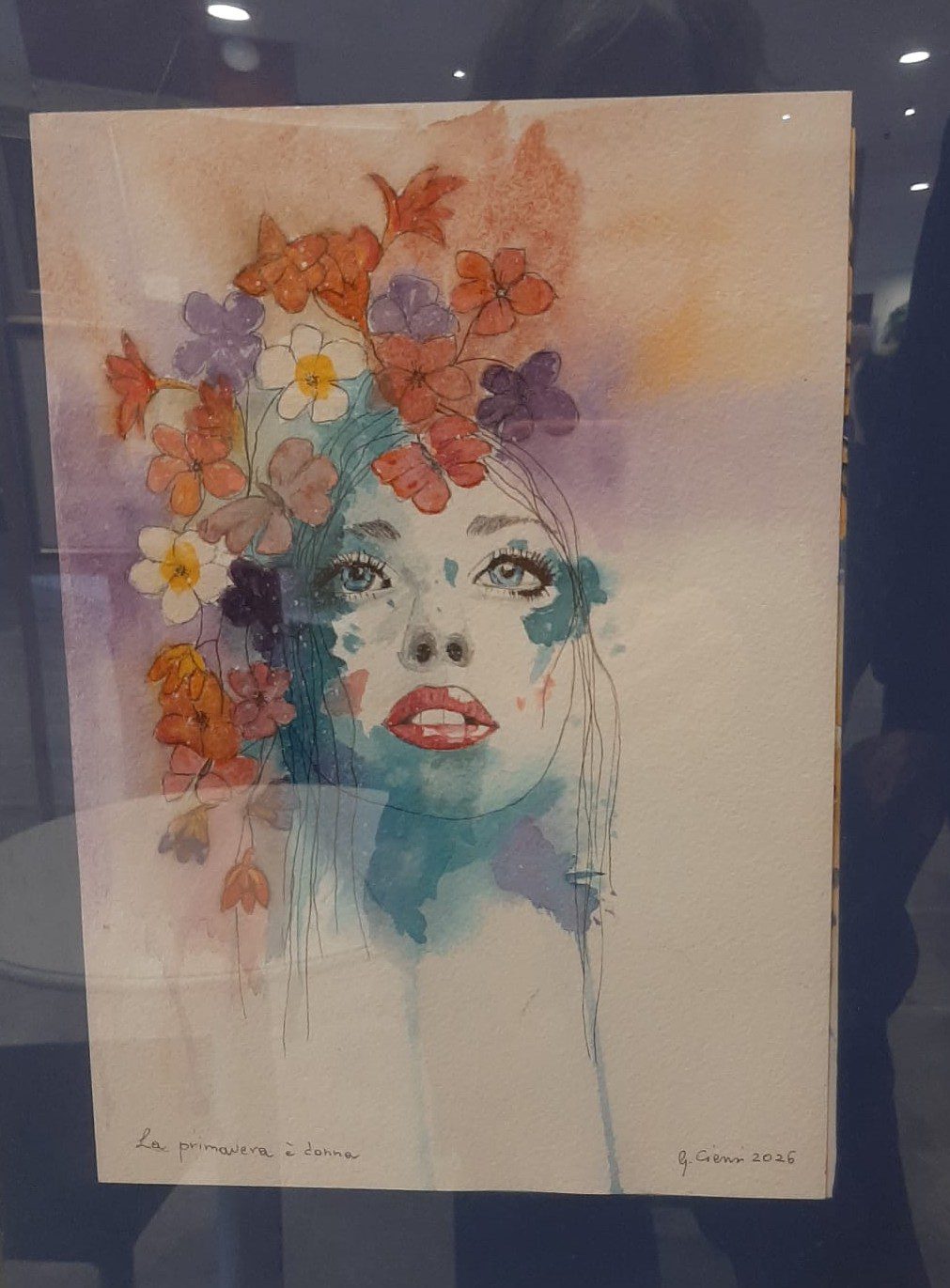 Uno spazio di rilievo è stato dedicato anche ai lavori delle allieve del corso di acquerello, curato per la “Mazzon” dall’insegnante Valentina Paolucci, che hanno esposto i risultati del percorso tecnico svolto durante l’anno.