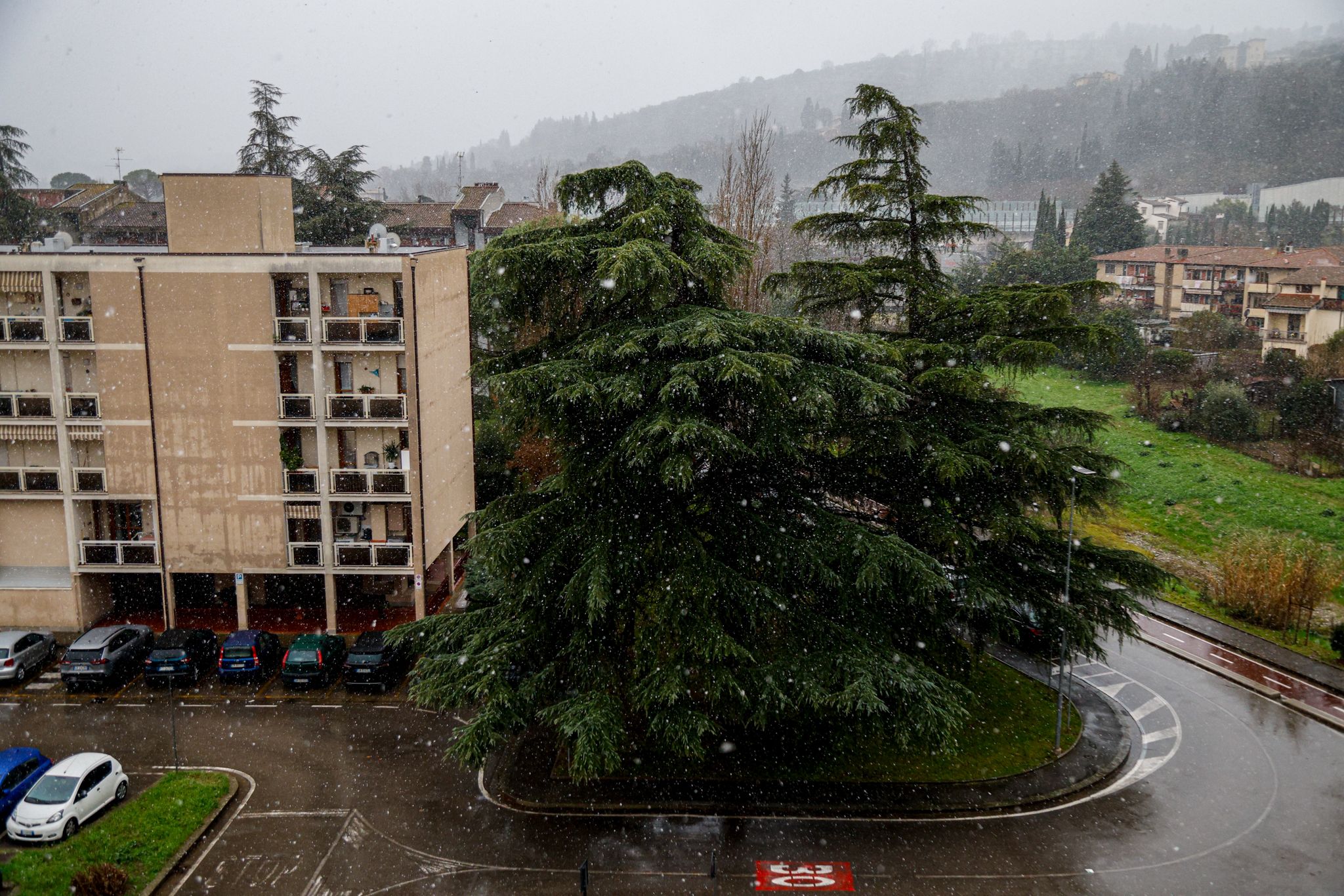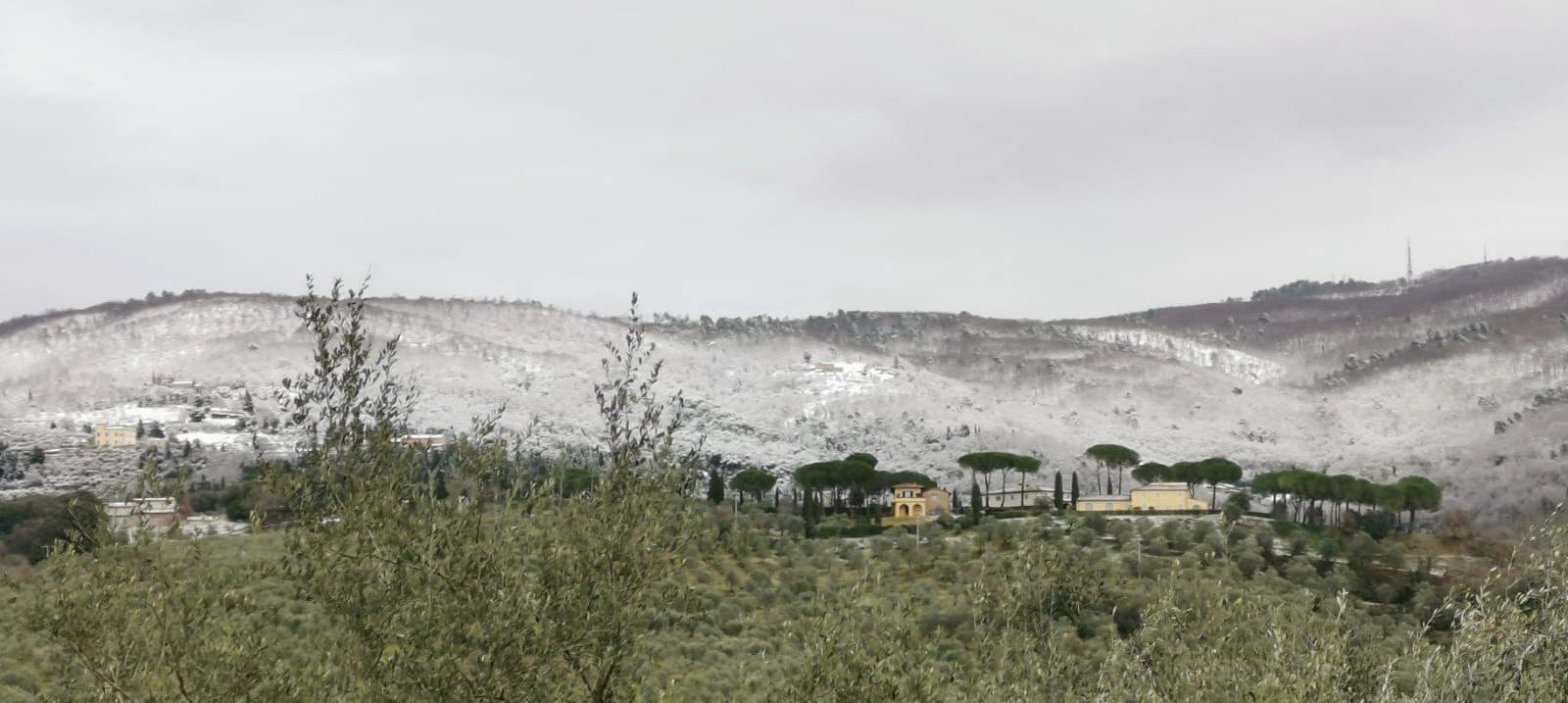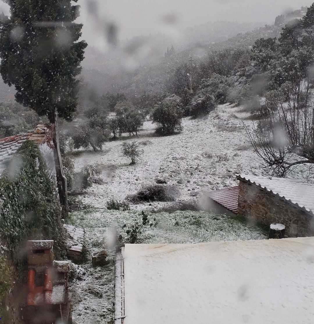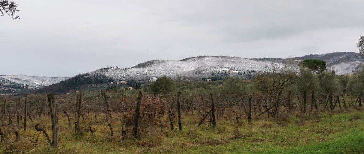 La neve ha imbiancato anche le frazioni collinari intorno a Bagno a Ripoli, Antella e Grassina.