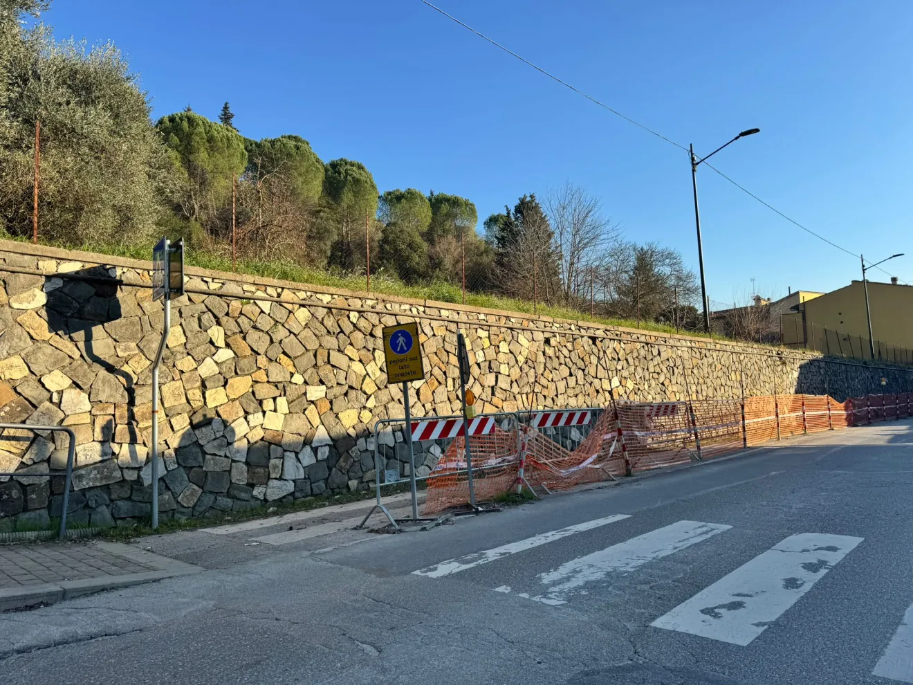 Il problema nasce a causa di un muro pericolante. Circa tre anni fa il camminamento pedonale sul lato detsro della strada fu transennato e chiuso. Il muro a retta della proprietà confinate fu ritenuto pericolante e per sicurezza fu chiuso il passaggio ai pedoni, costretti a transitare sul lato opposto. Chi deve intervenire per mettere il muro di contenimento in sicurezza? Il privato o il Comune? Passano gli anni (sono già circa tre) ma la risposta non arriva. Così i cittadini si trovano “stretti” tra il muro pericolante e il muro… di gomma di proteste e richieste che rimbalzano.