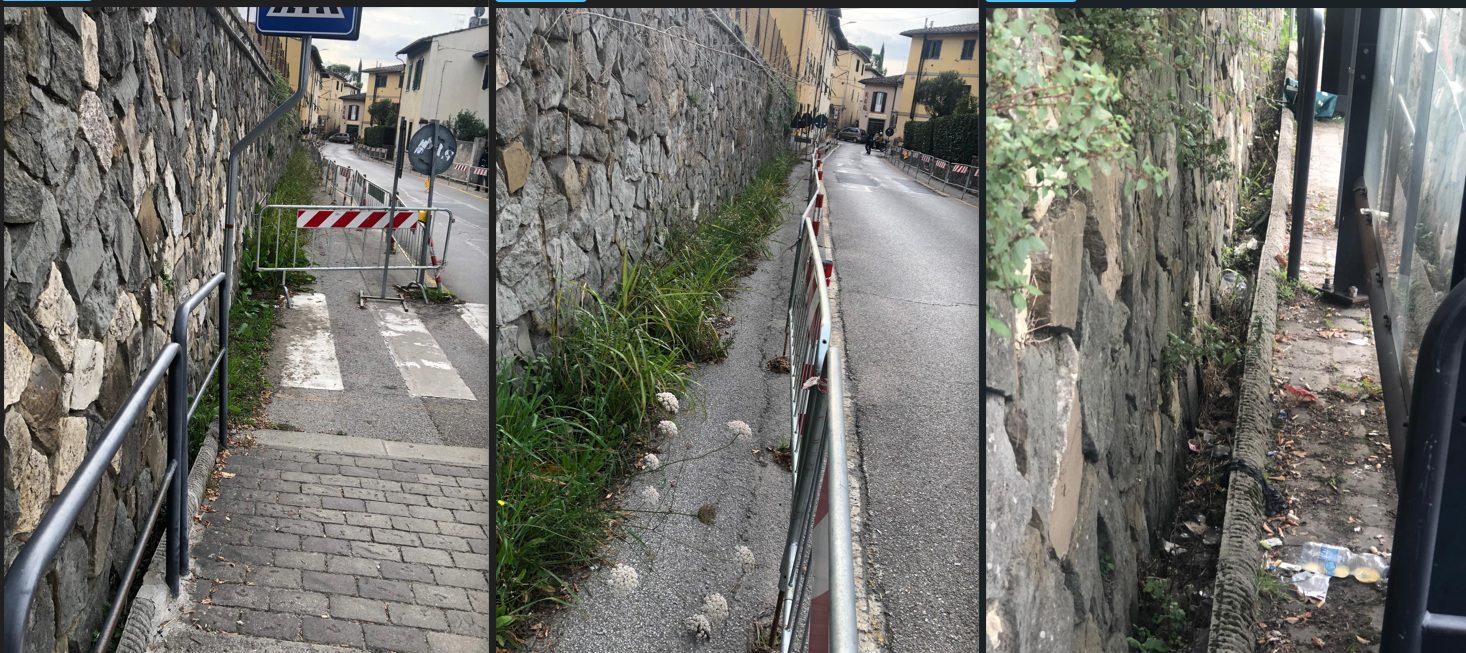Il problema fu affrontato nel gennaio scorso in Palazzo Vecchio, quando il consigliere comunale Francesco Casini presentò una interrogazione nella quale argomentava: “I residenti di Ponte a Ema hanno diritto a un intervento rapido ed efficace per riappropriarsi di un percorso essenziale per la loro quotidianità. La mobilità sostenibile e la qualità della vita e delle frazioni passa anche dal recupero e mantenimento dei percorsi pedonali”. La risposta dell’assessore al traffico Andrea Giorgio fu creare un camminamento pedonale, protetto da transenne, sul lato siistro della Chiantigiana. Soluzione temporanea (per quanti anni ancora?) ma resa insufficiente proprio dai problemi di facile allagamento di quel tratto di strada. Quando piove e i pedoni devono attraversare la Chiantigiana per raggiungere la fermata dell’autobus (che è sul lato destro), trovano una enorme pozza proprio sulle strisce pedonali: obbligo di guado o addio bus.