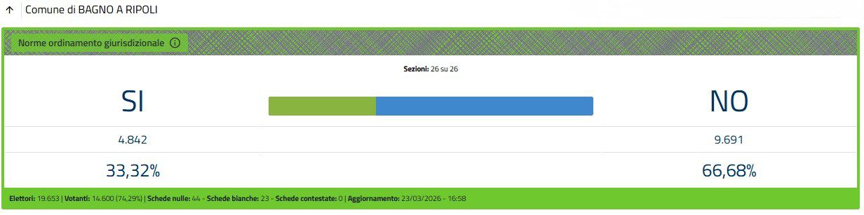 “Il NO ha vinto, in una splendida prova di democrazia – commenta il sindaco Francesco Pignotti sulla sua pagina Facebook -. A Bagno a Ripoli partecipazione da record in Toscana, con un quorum del 74,29%. La più bella testimonianza che nella nostra comunità esiste un profondo senso civico, che va oltre le appartenenze. Il NO si è affermato nettamente, vincendo con il 66,68%. Questo, per il centrosinistra, è il segno che quando si giocano le battaglie uniti si ottengono risultati straordinari. Lavorerò e lavoreremo per affermare sempre più questo modello sul nostro territorio. Il risultato nazionale dimostra che non si può cambiare la nostra Costituzione a colpi di maggioranza, senza un percorso realmente condiviso”.
