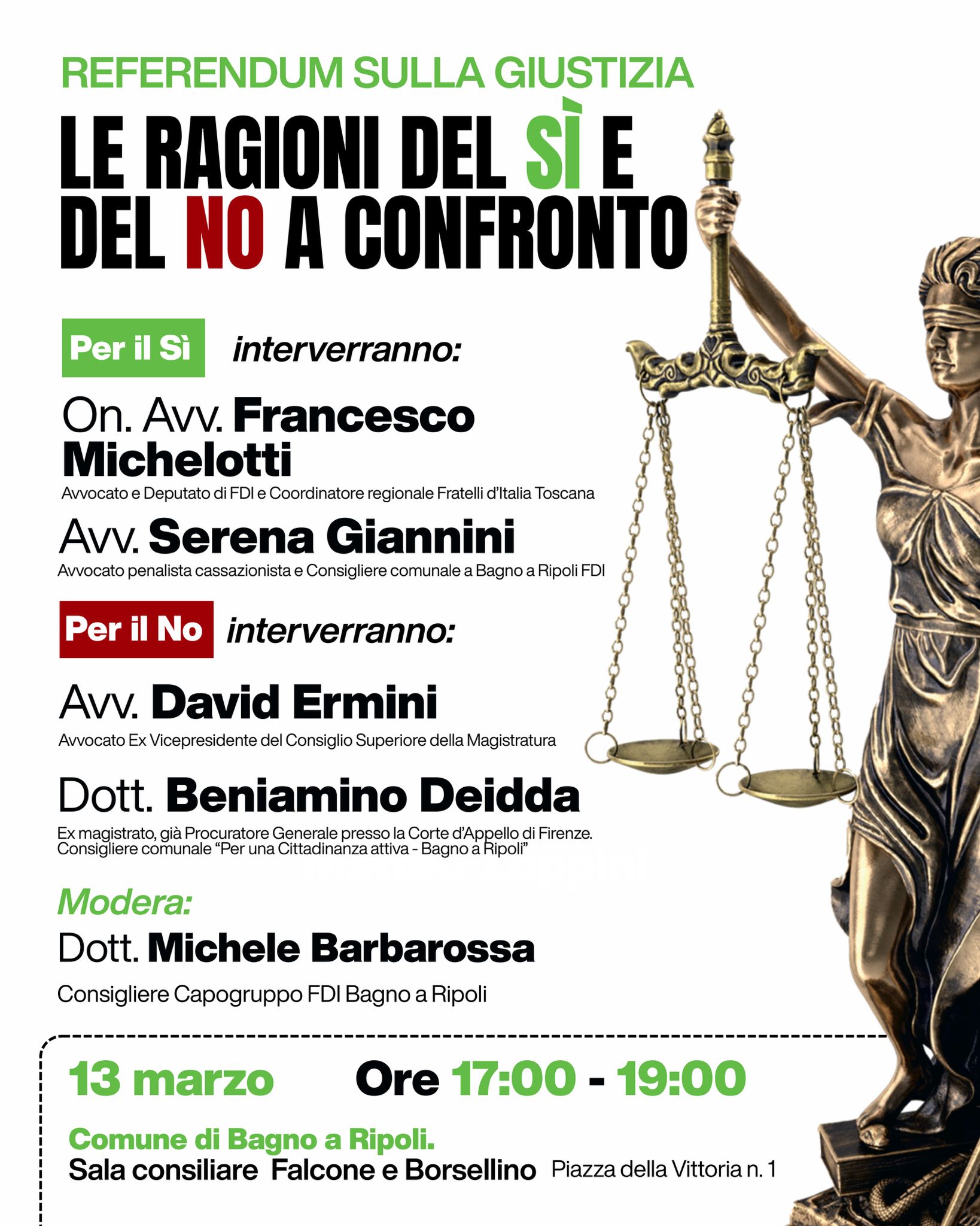 Un’occasione di chiarimento sul Referendum sulla Giustizia del 22 e 23 marzo prossimi, attraverso un confronto tra le ragioni del Sì e quelle del No.