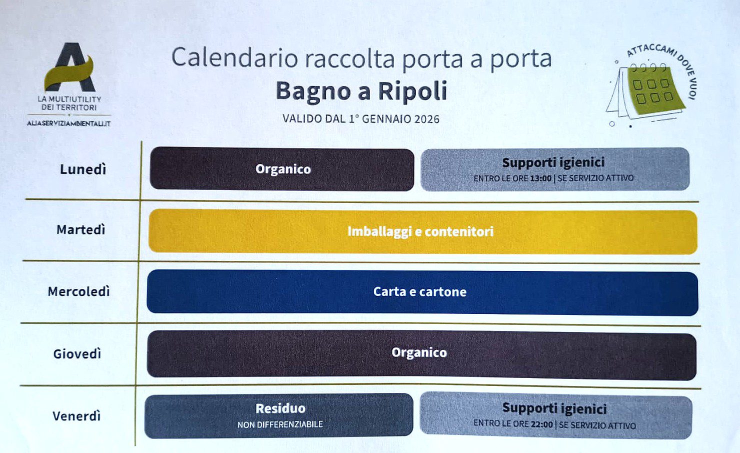 Un dettaglio il cambio di colori (giallo per il multimateriale, azzurro per la carta, invariati gli altri) e il nuovo calendario dei ritiri che trovate qui sotto: