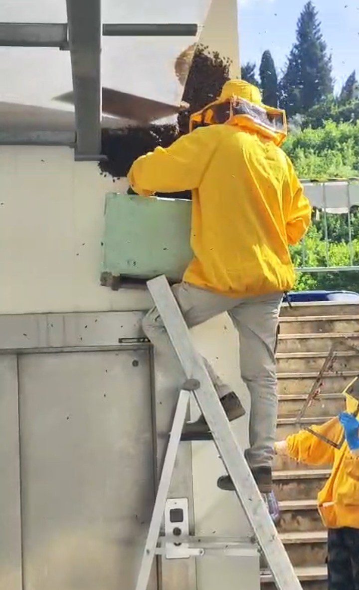 Recupero incruento si chiama l’operazione di messa in salvo delle api volta a prelevare uno sciame senza uccidere o danneggiare gli insetti. Due apicoltori esperti, contattati dal Gruppo Dipartimentale “Infestanti”, nell’arco di circa due ore sono riusciti a raccogliere l’ape regina e quasi tutto lo sciame al suo seguito.