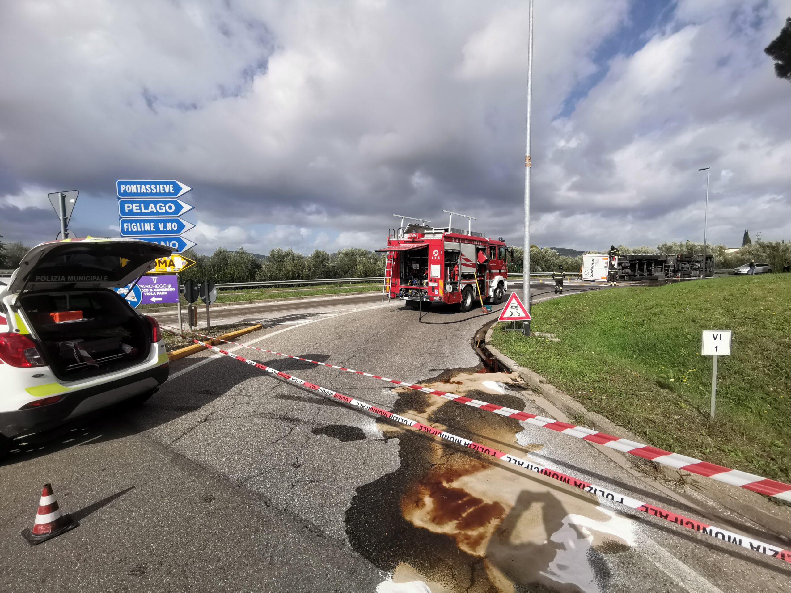 Un grosso autoarticolato si è ribaltato, poco prima delle 13 di oggi, in via di Rosano, appena superata la rotonda di Quarto in direzione Pontassieve. Al momento la viabilità tra via Pian di Ripoli e Candeli risulta interrotta in direzione Candeli, mentre procede rallentata in direzione Firenze. Sul posto sono presenti gli agenti della Polizia locale di Bagno a Ripoli, Vigili del Fuoco e Carabinieri per i necessari rilievi e per garantire quanto prima il ripristino della viabilità.