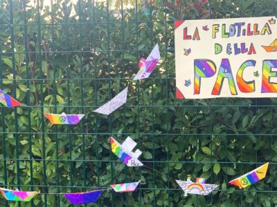 Decine di barchette di carta realizzate dagli alunni della scuola Anna Maria Enriques Agnoletti di Bagno a Ripoli