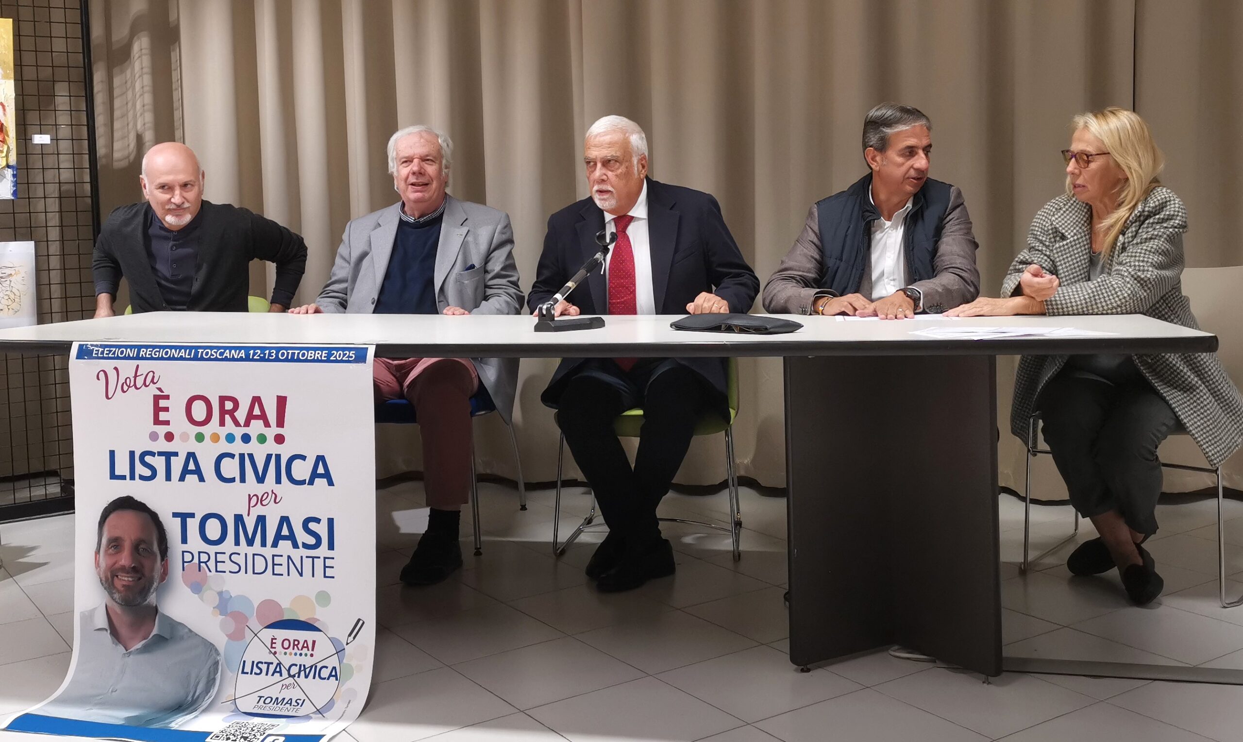 Non c’è il pubblico “delle grandi occasioni” alla presentazione dei candidati (solo tre presenti su sei) della lista civica “E’ ora!”, che appoggia la candidatura di Alessandro Tomasi alla presidenza della Regione. Appena una a decina di simpatizzati, ieri sera, alla Biblioteca comunale di Ponte a Niccheri. Nessun esponente delle forze politiche di centro destra con le quali “E’ ora!” è in coalizione. Ma il coordinatore regionale della lista, Daniele Lorenzini, già sindaco di Rignano per dieci anni (ex Pd), suona comunque la carica in vista del voto del 12 e 13 ottobre: “Possiamo vincere”.